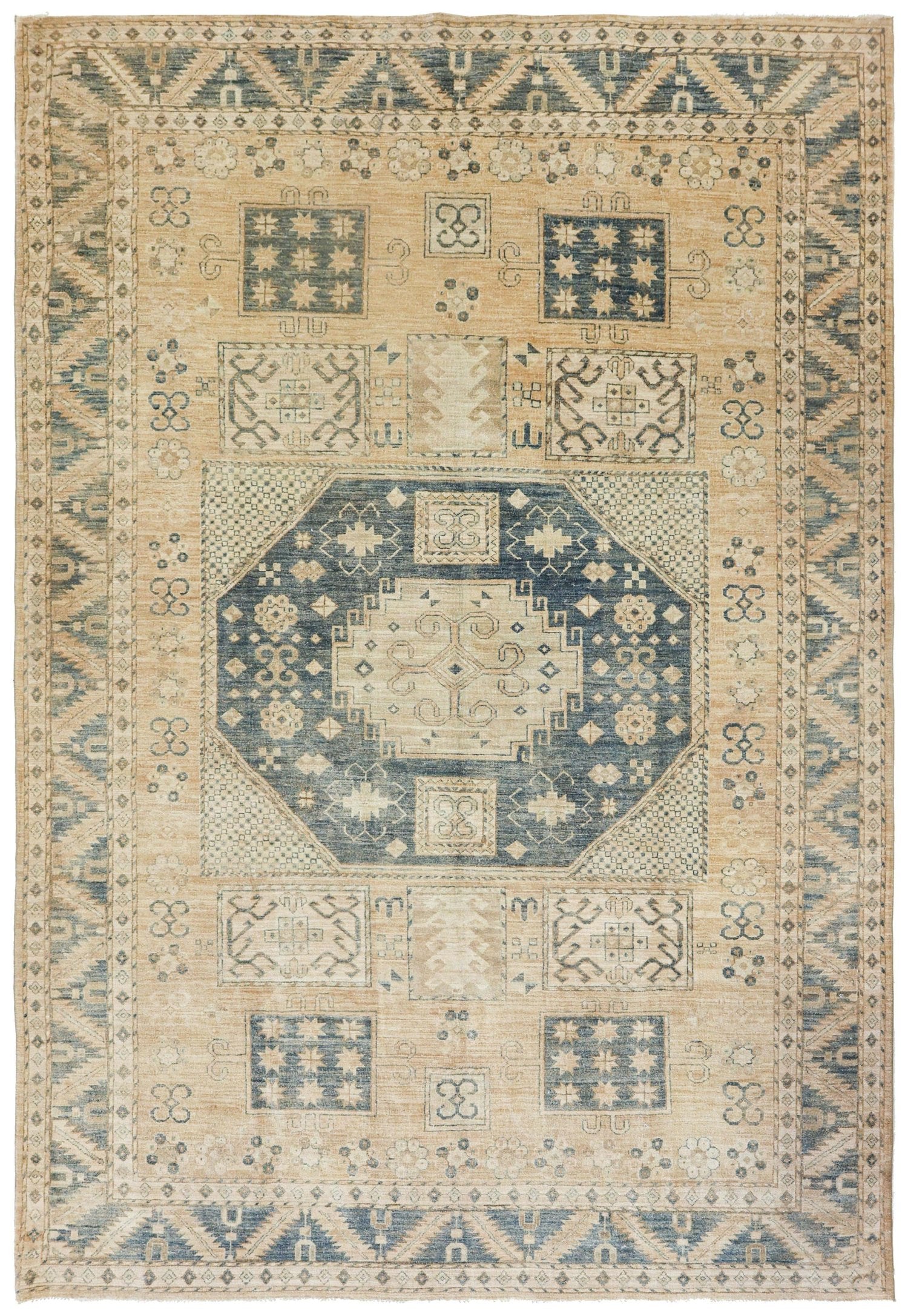 New Caucasian Tribal Afghani Kazak 6' 5" X 8' 11" Beige Rug