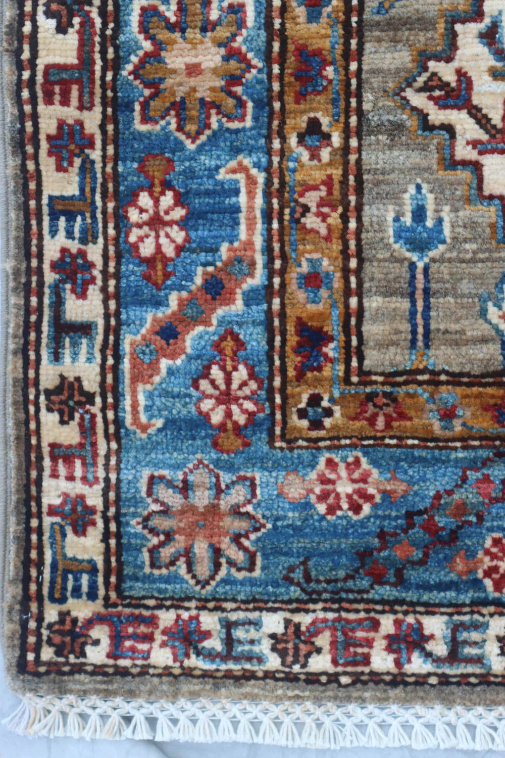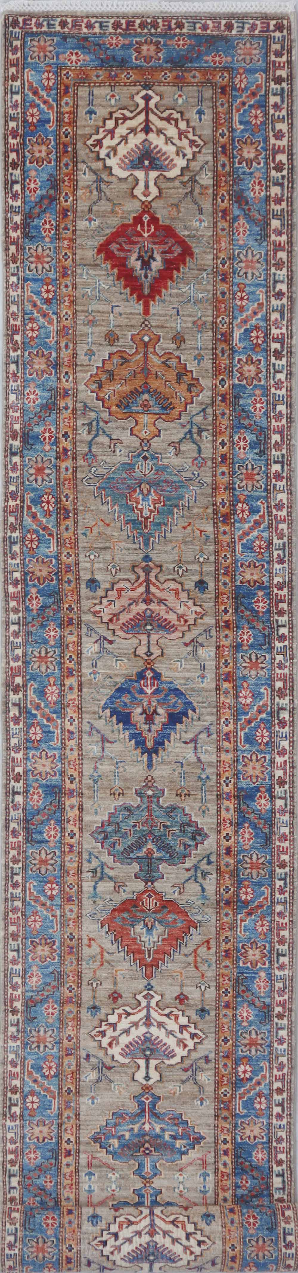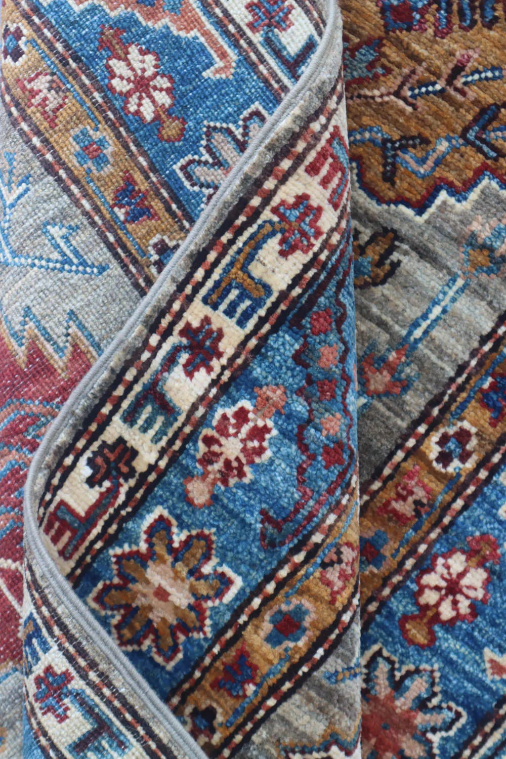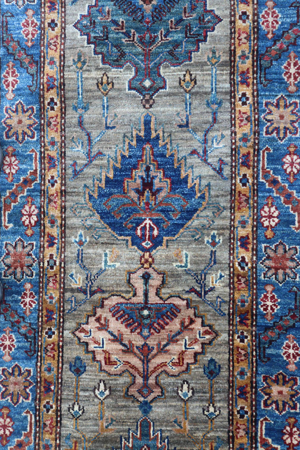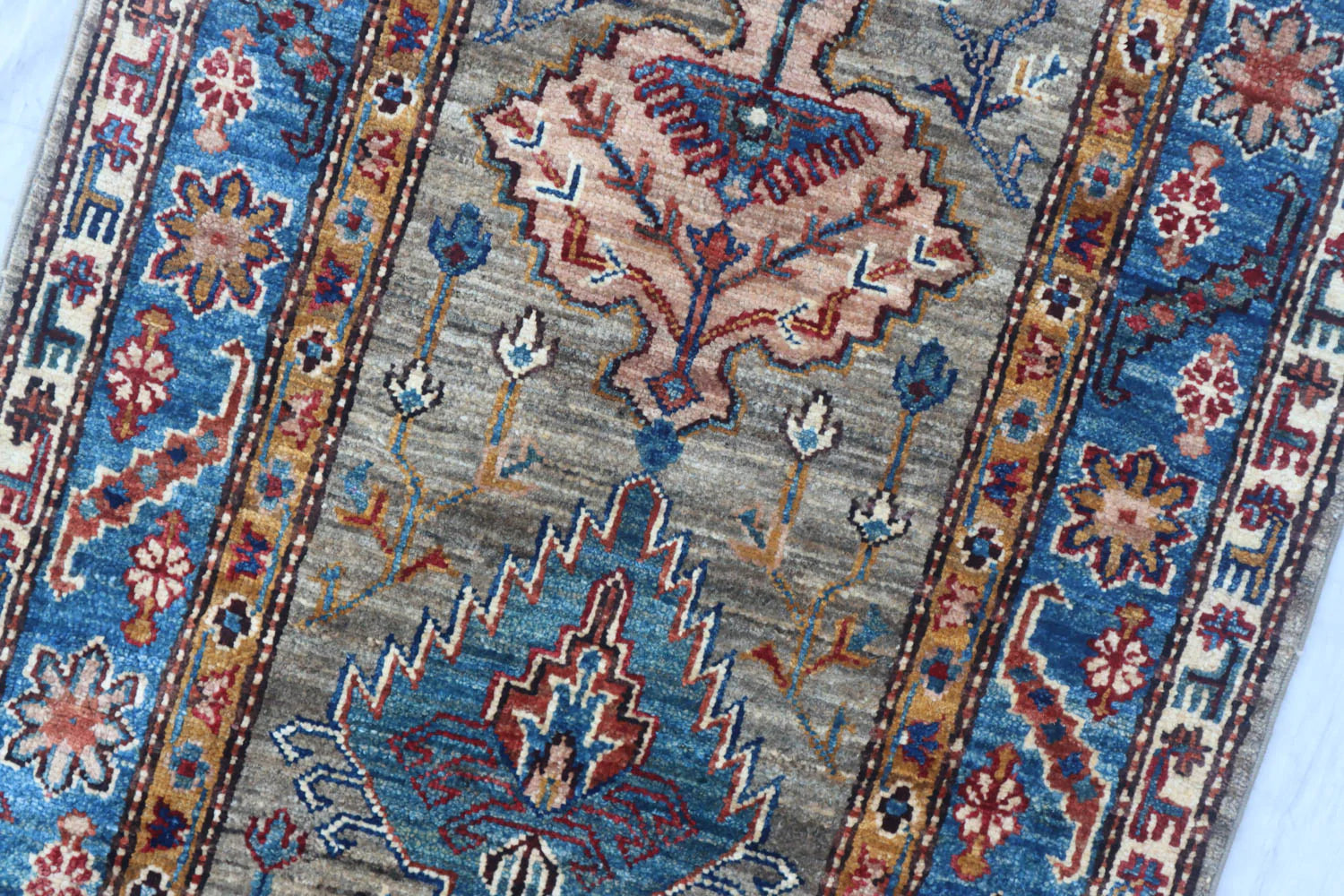 Looking to take your home’s interior design up a notch (or several)? Nothing does it better than a striking statement piece — such as our luxurious Kazak Handwoven Tribal Rug (J63798). This 2' 7" X 20' 5" tribal Caucasian rug has a Kazak design in grey and blue. Constructed of wool pile on a cotton foundation, you know that this rug not only looks great but feels nice and will stand the tests of time and traffic. Quality and style are hallmarks of new handwoven Afghani rugs — so you’ll be admiring this one for years to come! All you have to do is claim your Kazak Handwoven Tribal Rug today.