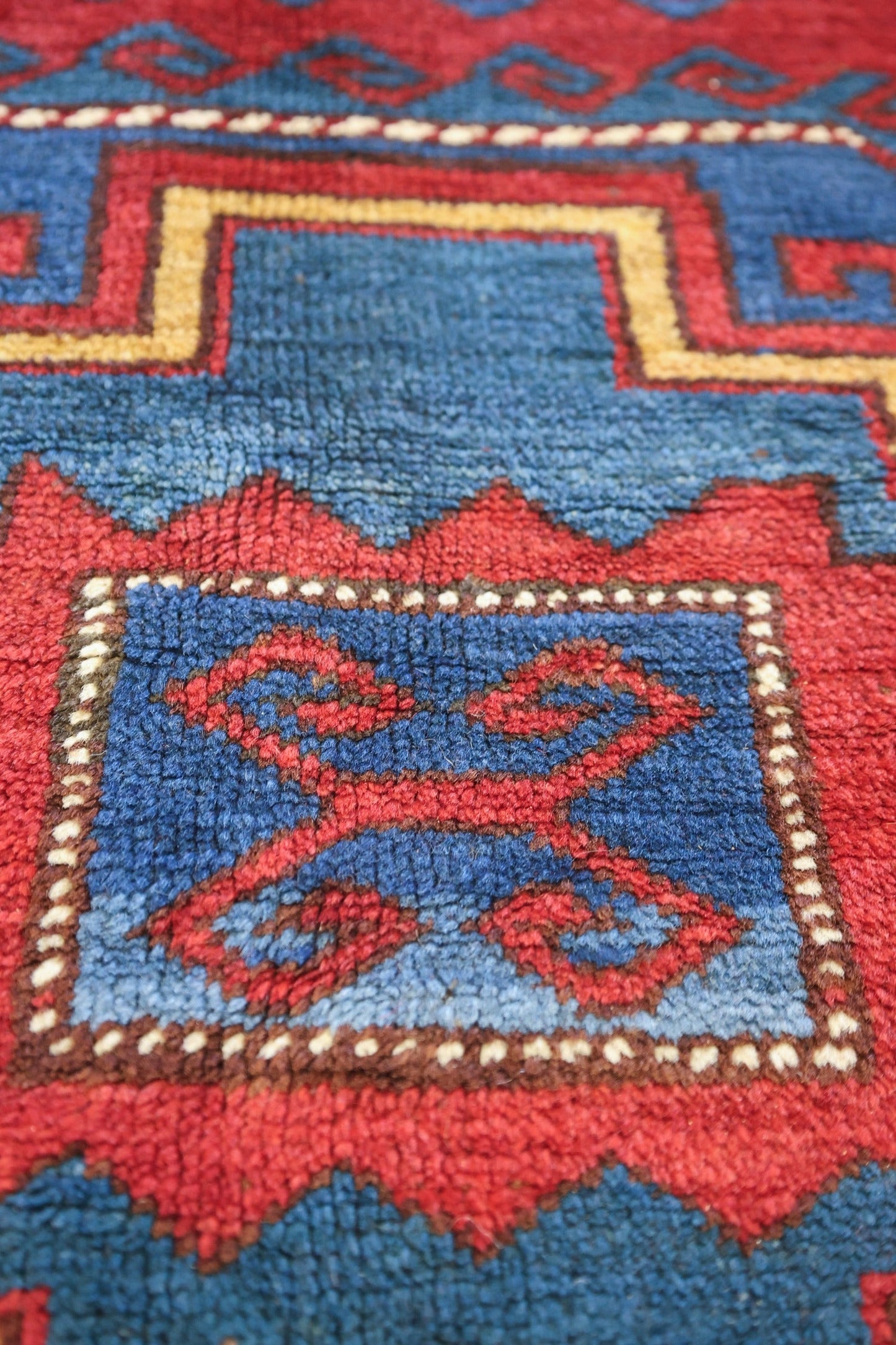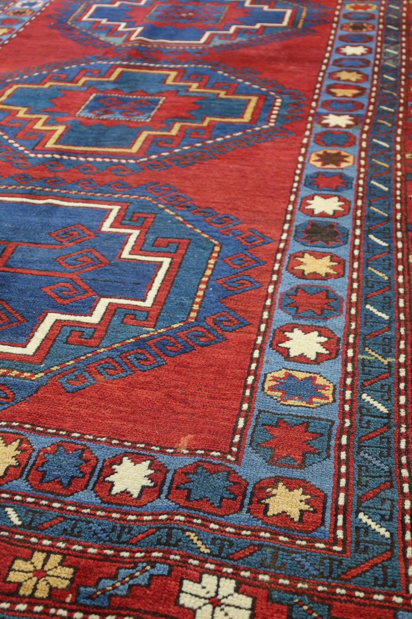 This specific rug, with its culturally rich origins and traditional design, stands as a fine example of Kazak tribal art, illustrating both historical craftsmanship and the artistic sensibilities of its time.