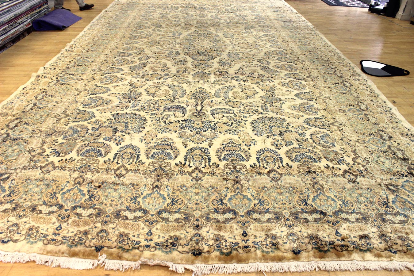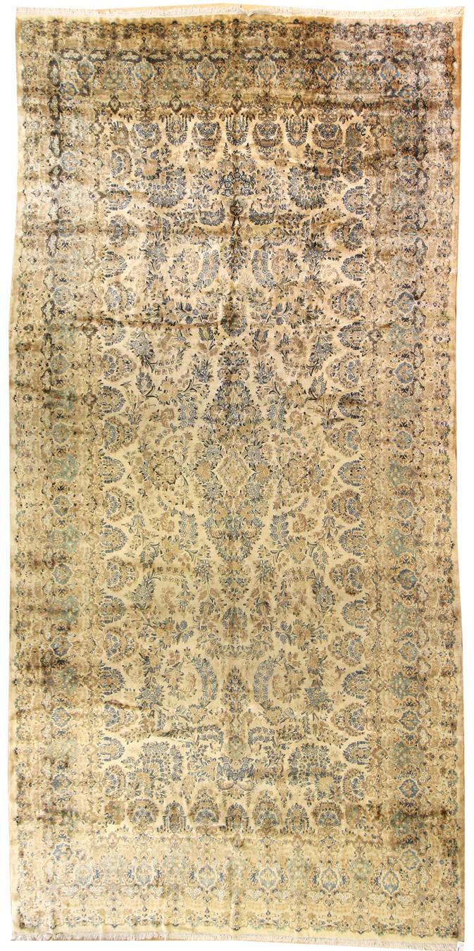 Make your house truly feel like home with our Antique Kerman Handwoven Traditional Rug (JF4458). It's antique (circa 1930) and traditional. It’s ivory with celadon accent colors. It’s a Formal Classic Persian style rug with a Kerman motif. All things you gravitate towards when it comes to aesthetics and design in your space. Being a 12' 1" X 23' 9" rug of wool pile on a cotton foundation, you can rest assured that this piece will do more than just make the visual impact and create the vibe you want. It comes from the fine Persian tradition of handwoven rugmaking, meaning this rug will serve you well and look terrific for years. Add that extra special personal touch today with your own Antique Kerman Handwoven Traditional Rug.