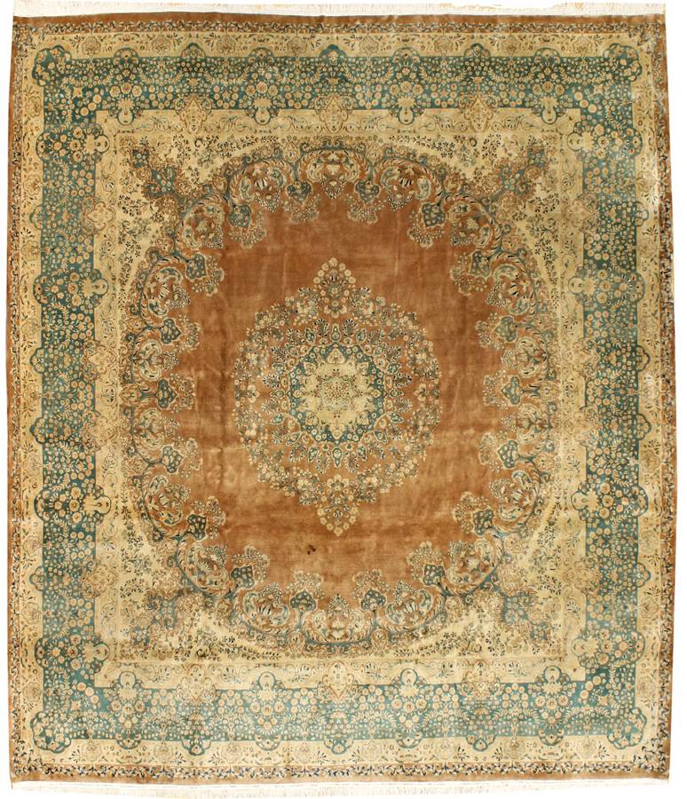 Elevate your room’s style with our Antique Kerman Handwoven Traditional Rug (JF5232). The traditional Formal Classic Persian style, with its Kerman motif, is definitely a stunner that you’ll be proud to show off in your home. Its distinctive brown, mocha and mint palette will add charm, elegance, and that little bit of that ever-elusive je ne sais quoi. Plus, the wool pile on a cotton foundation used in this 11' 9" X 12' 9" rug accentuates its allure. But, this rug isn’t just worthy of gracing the pages of a design magazine. With its masterful Persian handwoven construction, this antique rug from around 1935 will be a prized possession for decades to come. Get your own show-stopping Antique Kerman Handwoven Traditional Rug today!
