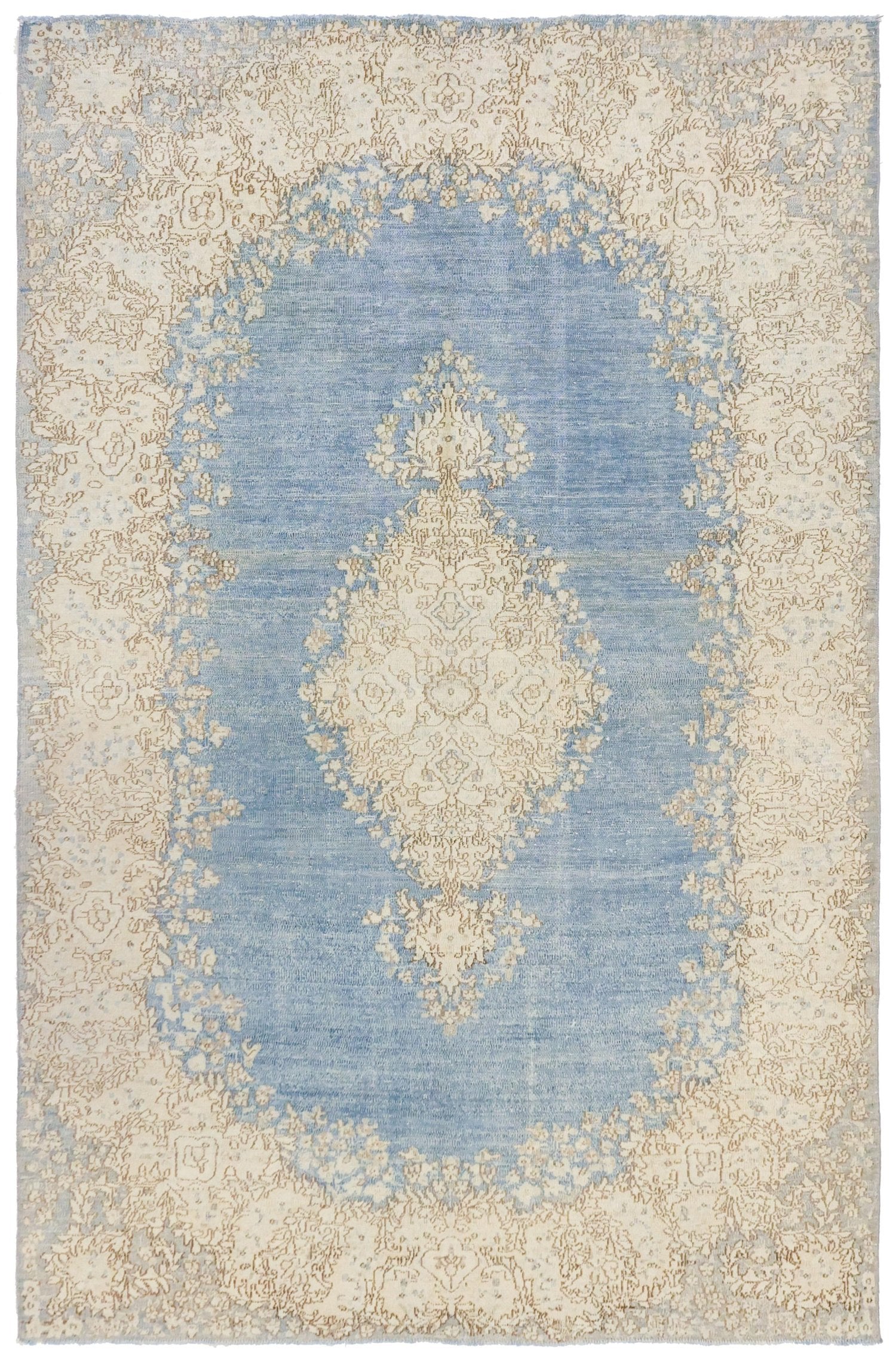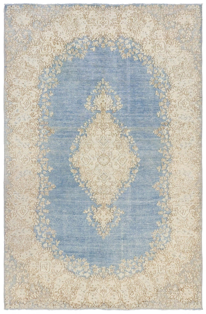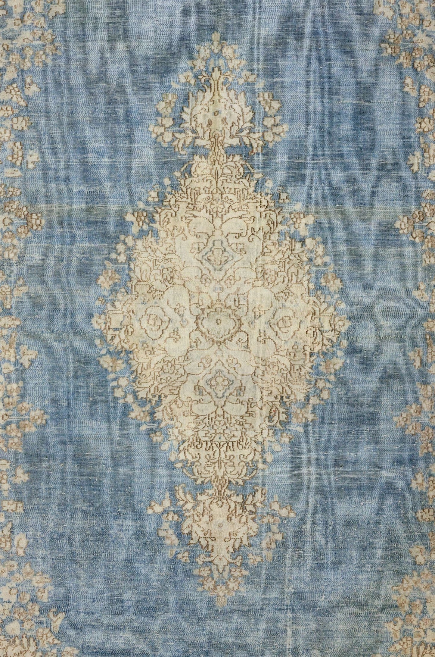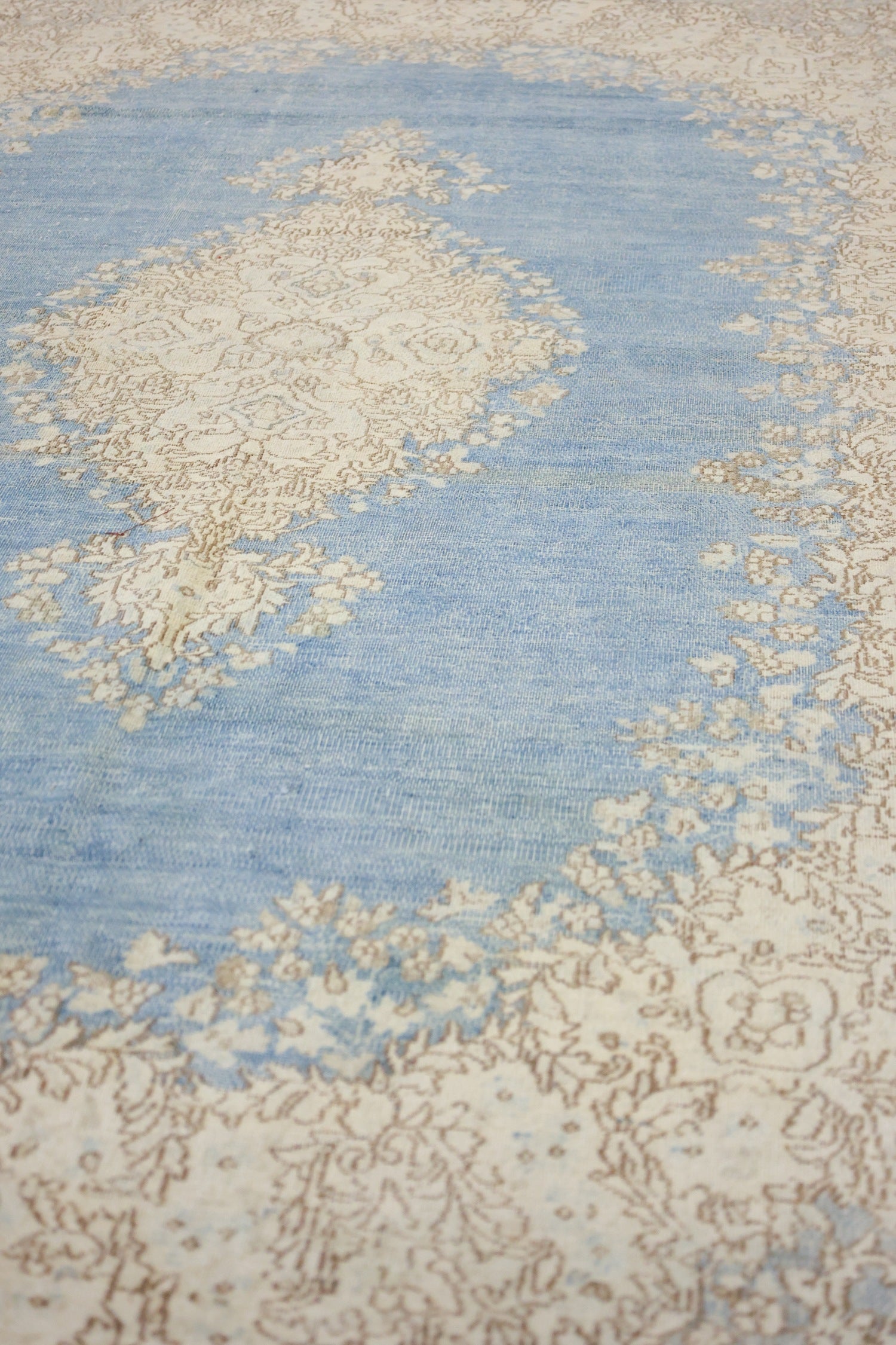 Vintage 1935 Overdyed & Distressed Transitional Persian Kerman 4' 10" X 7' 6" Blue Rug