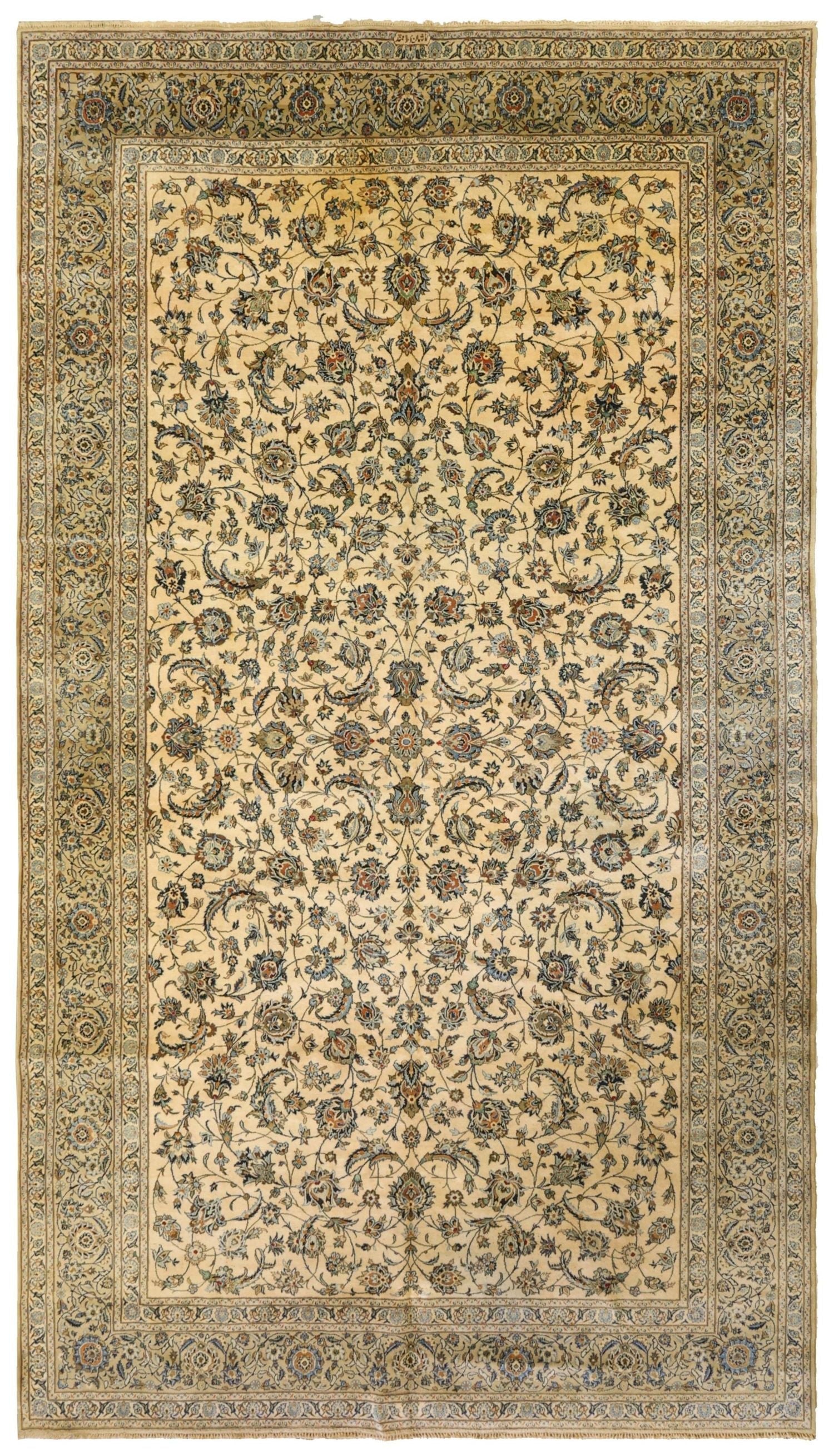 Antique Formal Classic Persian Traditional Persian Keshan 10' 4" X 18' 2" Ivory Rug