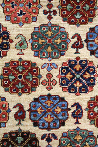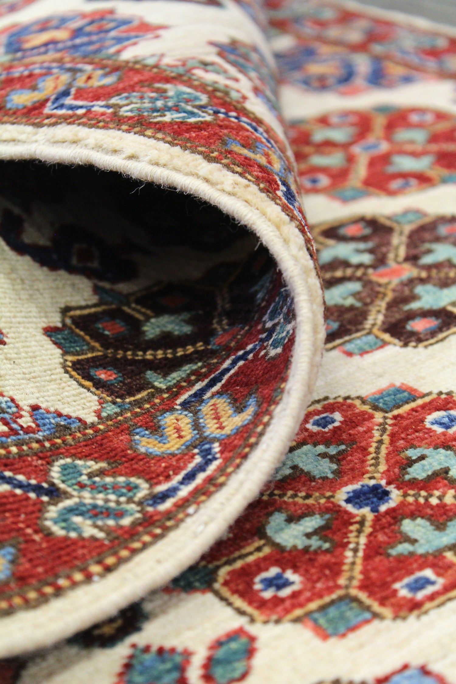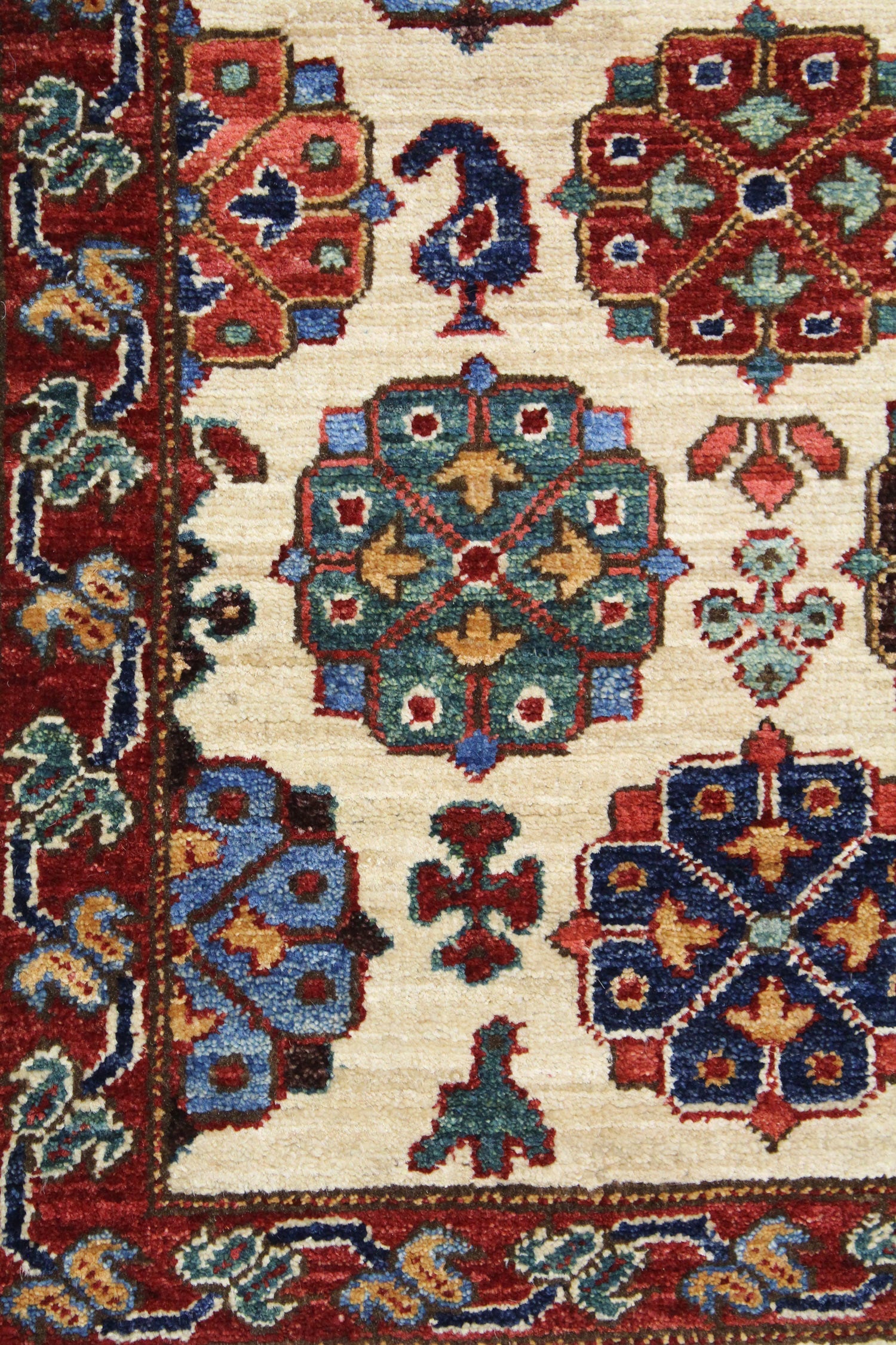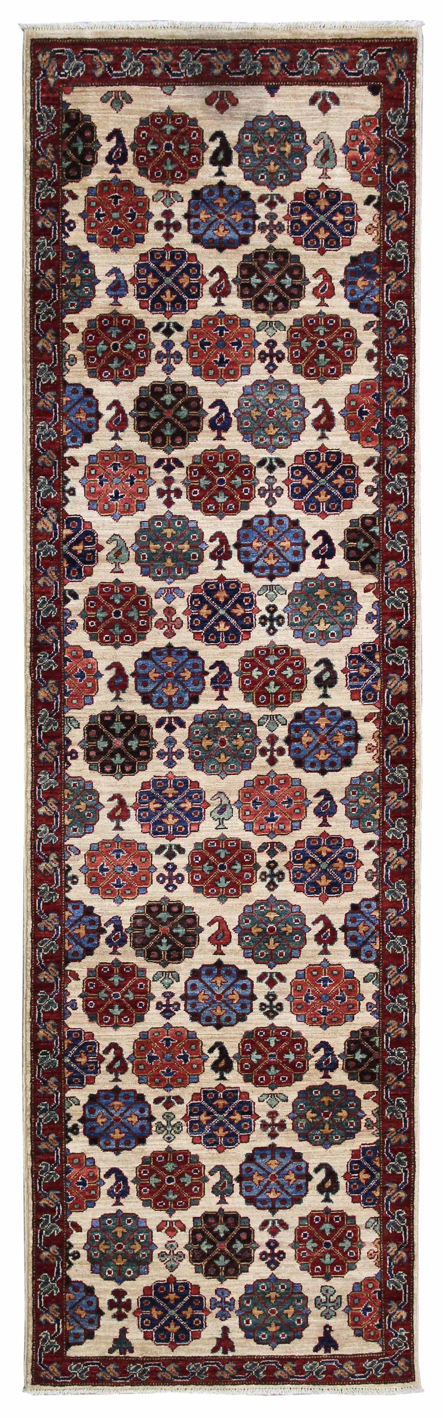 Measuring 2'4" x 7'10", this Afghan rug is a magnificent addition to any space. Its traditional design and high-quality construction make it a timeless and cherished piece. Indulge in the beauty and craftsmanship of this exceptional rug, bringing elegance and charm to your home.