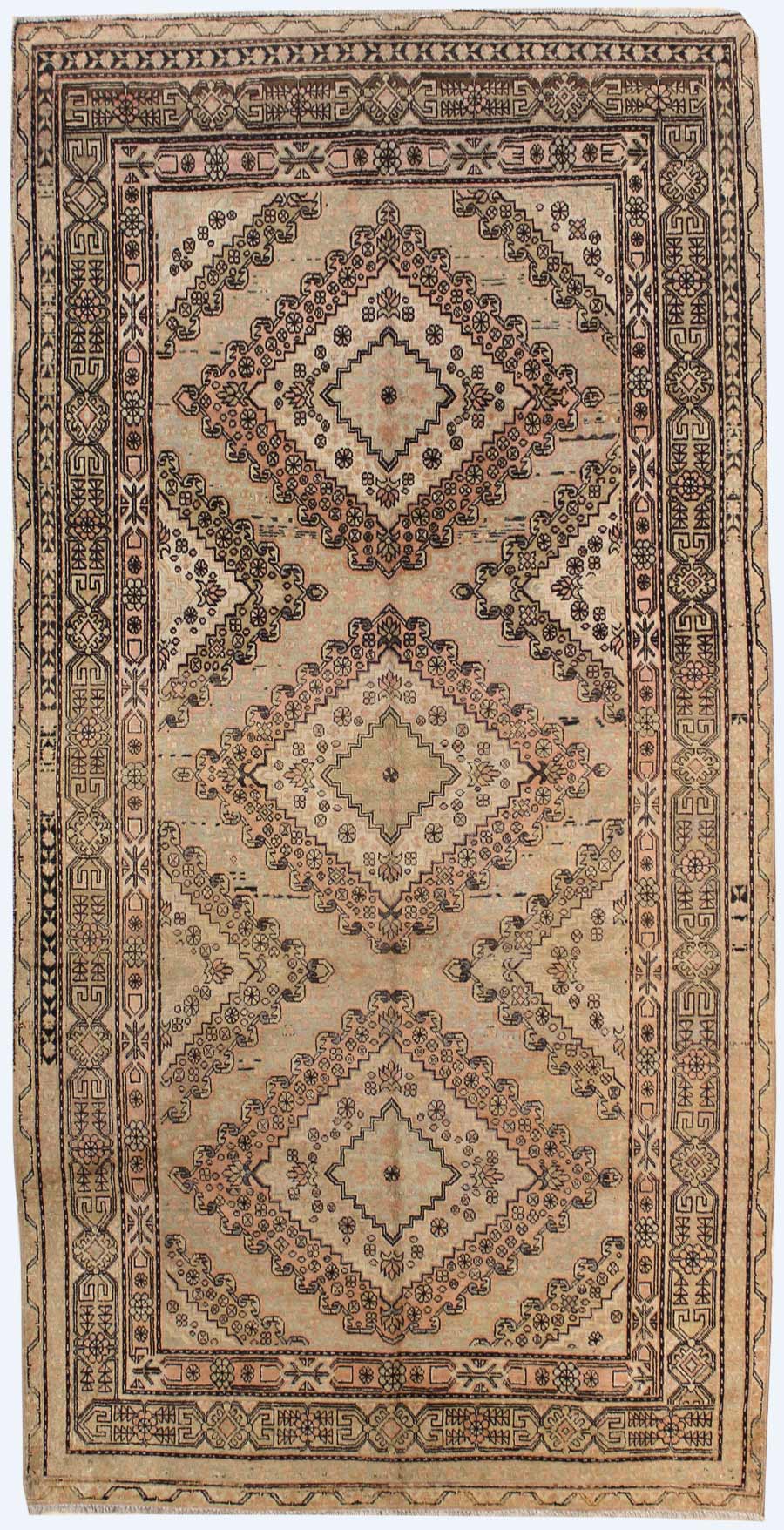 Khotan rugs are named after Khotan, an ancient city on the Silk Road in southern Xinjiang, China. This strategic location facilitated cultural exchanges and trade, influencing the design elements found in these carpets. Khotan rugs are renowned for their fusion of motifs from Chinese, Tibetan, Persian, Turkish, and Turkoman cultures, creating a distinctive aesthetic that represents a blend of these diverse influences.