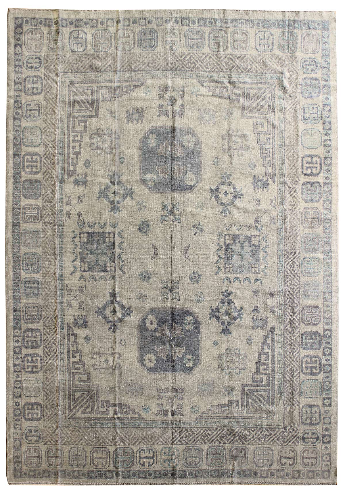 Make a grand statement in your home with our stunning Khotan Handwoven Traditional Rug (J39020). This traditional handwoven Turkish rug has an alluring Khotan style with its Khotan design in rich hues of grey and taupe. Wool pile on a wool foundation make this new rug both sturdy and comfortable to the touch. At 9' 8" X 13' 1" in size, this rug will add just the right amount of pizzazz to any room. All in, you’ll be loving this rug today, tomorrow, and beyond. So, go ahead — get your Khotan Handwoven Traditional Rug today!