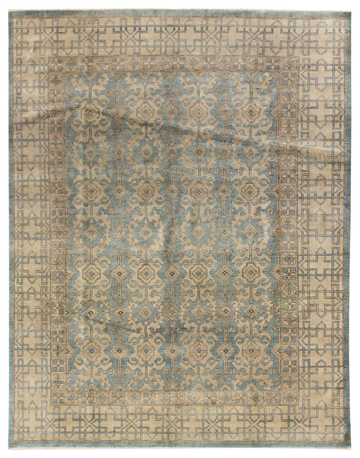 Make a grand statement in your home with our stunning Khotan Handwoven Traditional Rug (J47172). This traditional handwoven Pakistani rug has an alluring Khotan style with its Khotan design in rich hues of blue, light blue and ivory. Wool pile on a cotton foundation make this new rug both sturdy and comfortable to the touch. At 8' 10" X 11' 9" in size, this rug will add just the right amount of pizzazz to any room. All in, you’ll be loving this rug today, tomorrow, and beyond. So, go ahead — get your Khotan Handwoven Traditional Rug today!