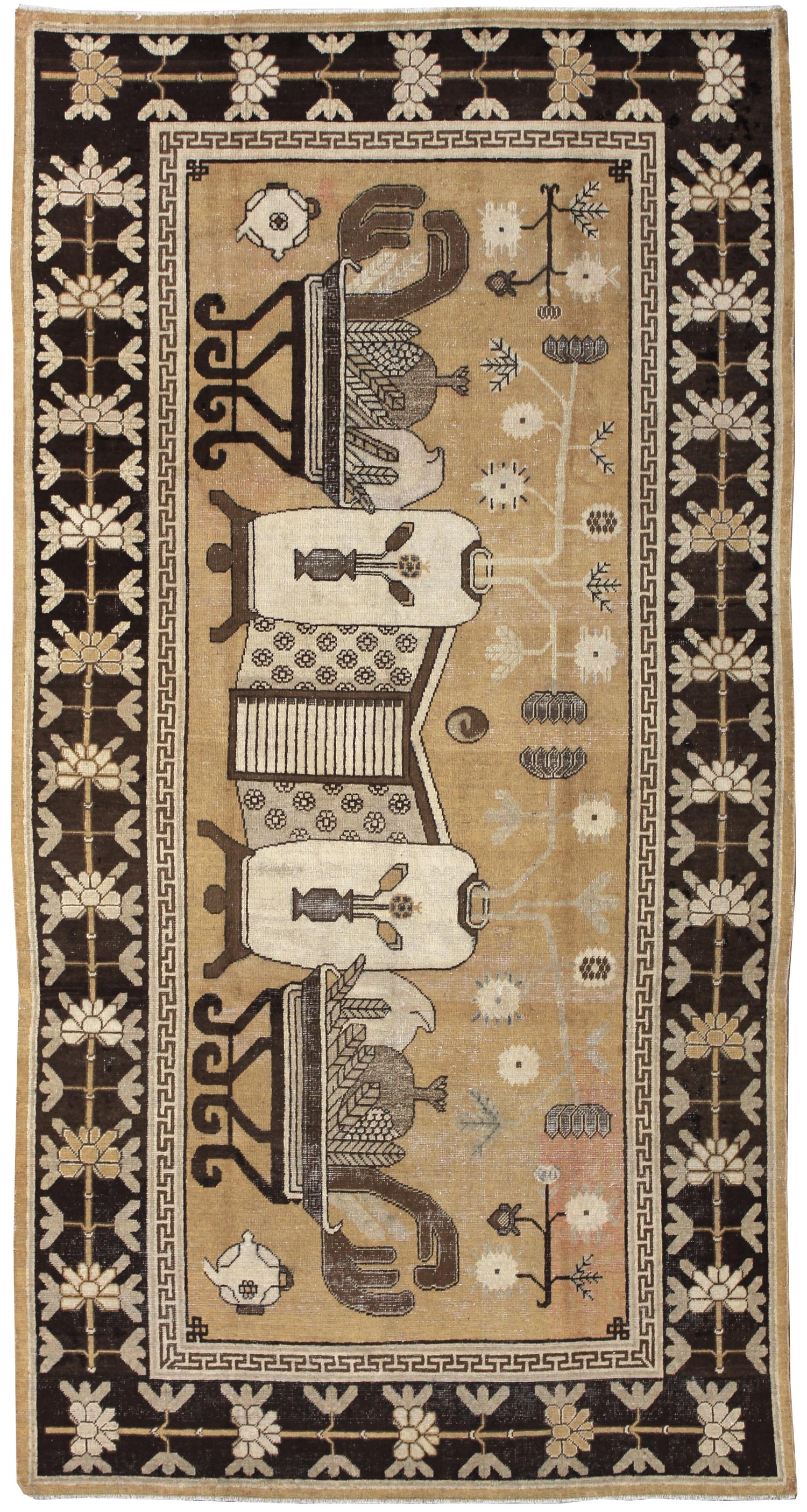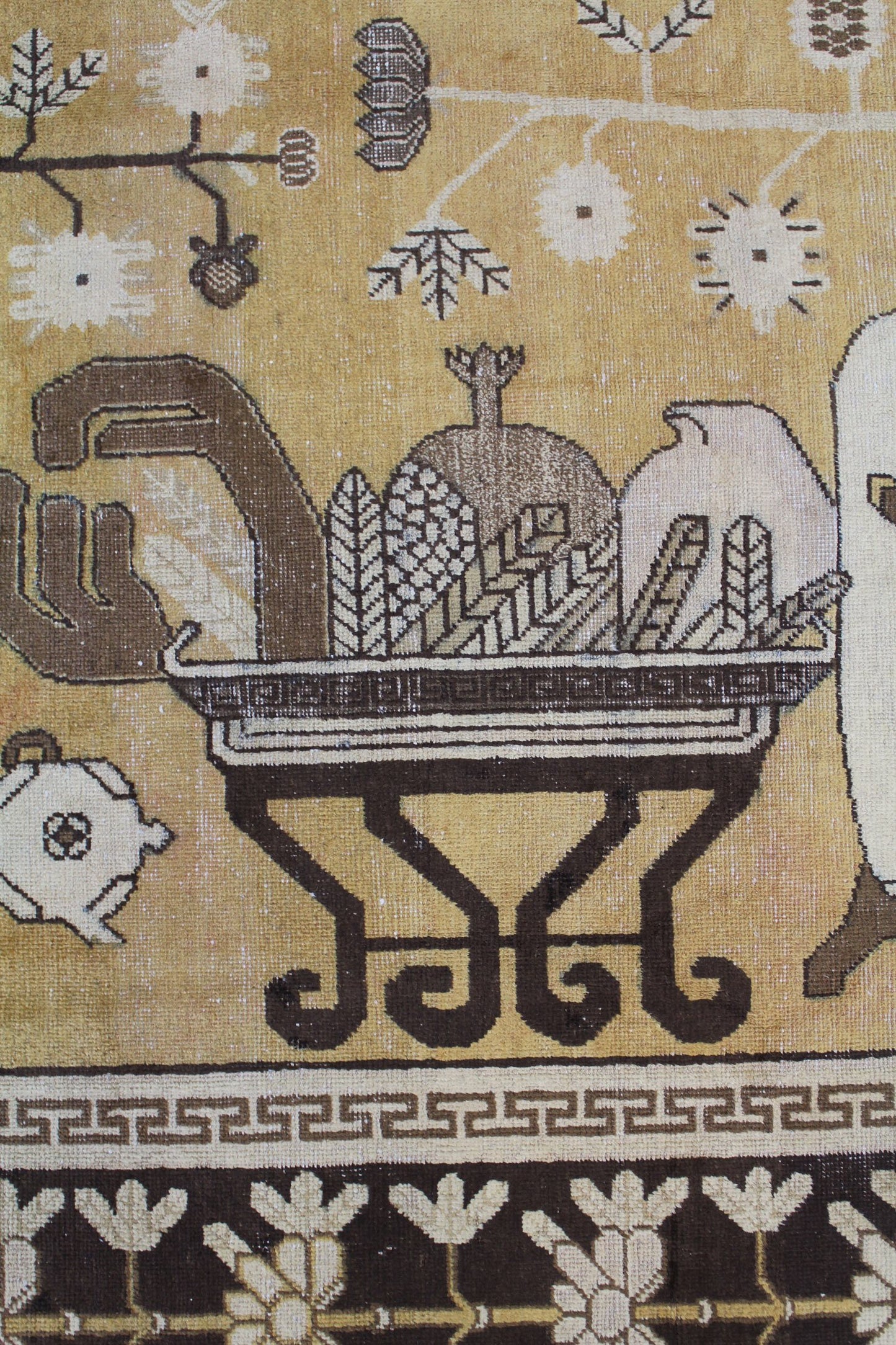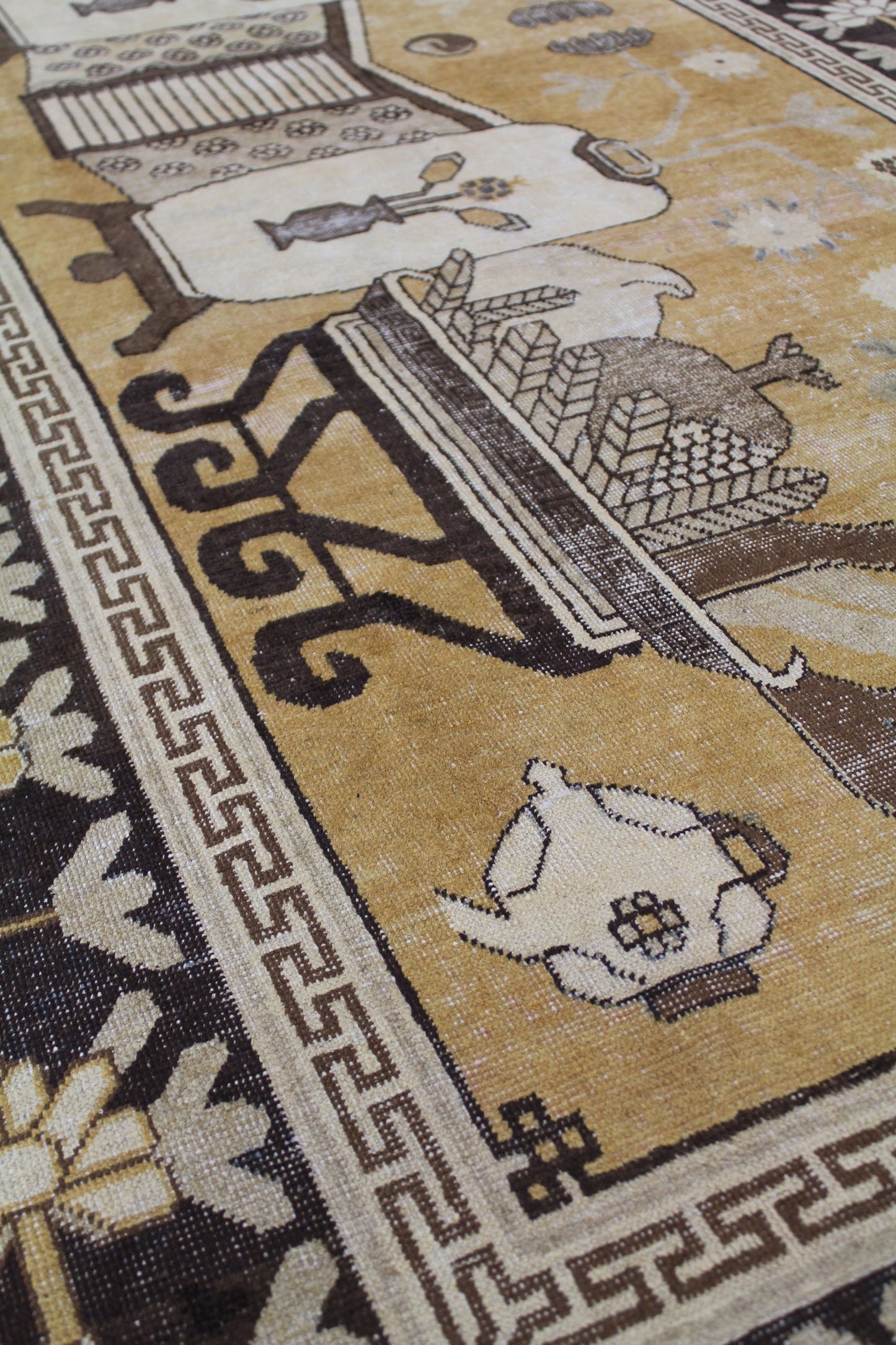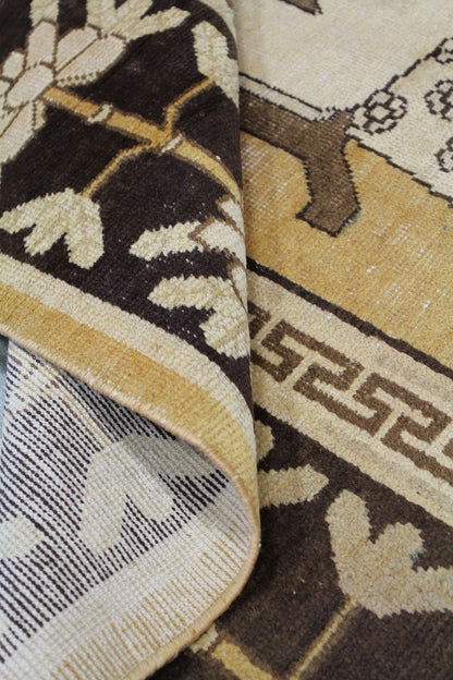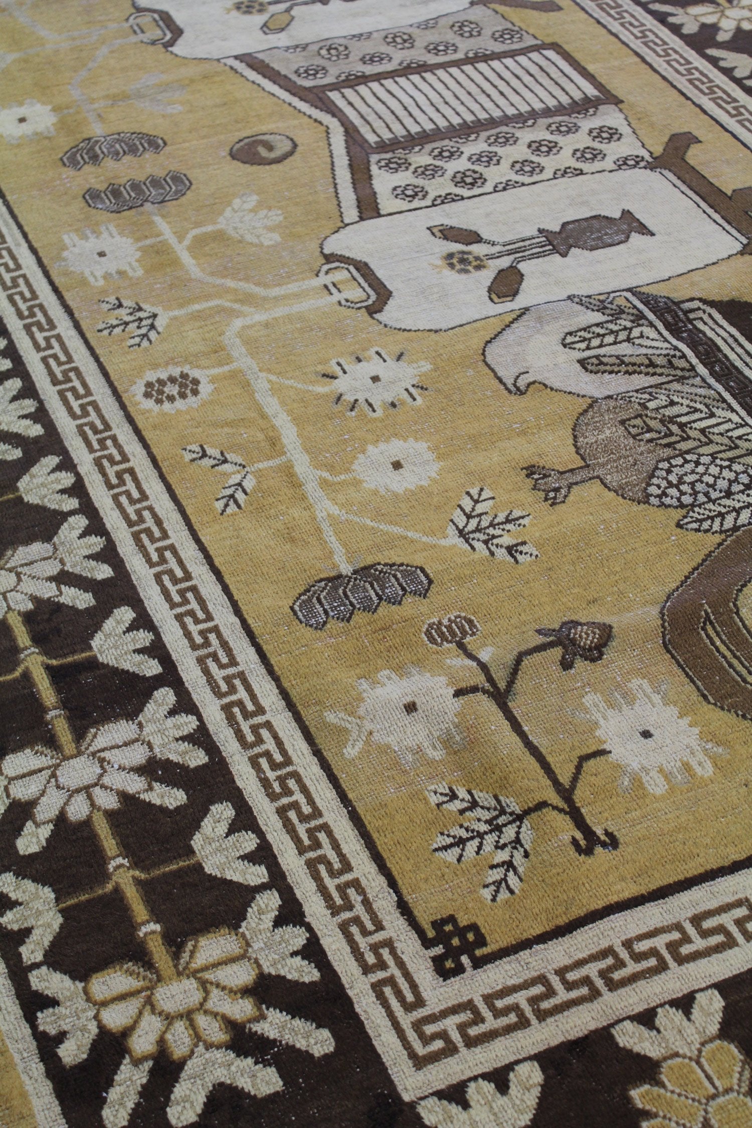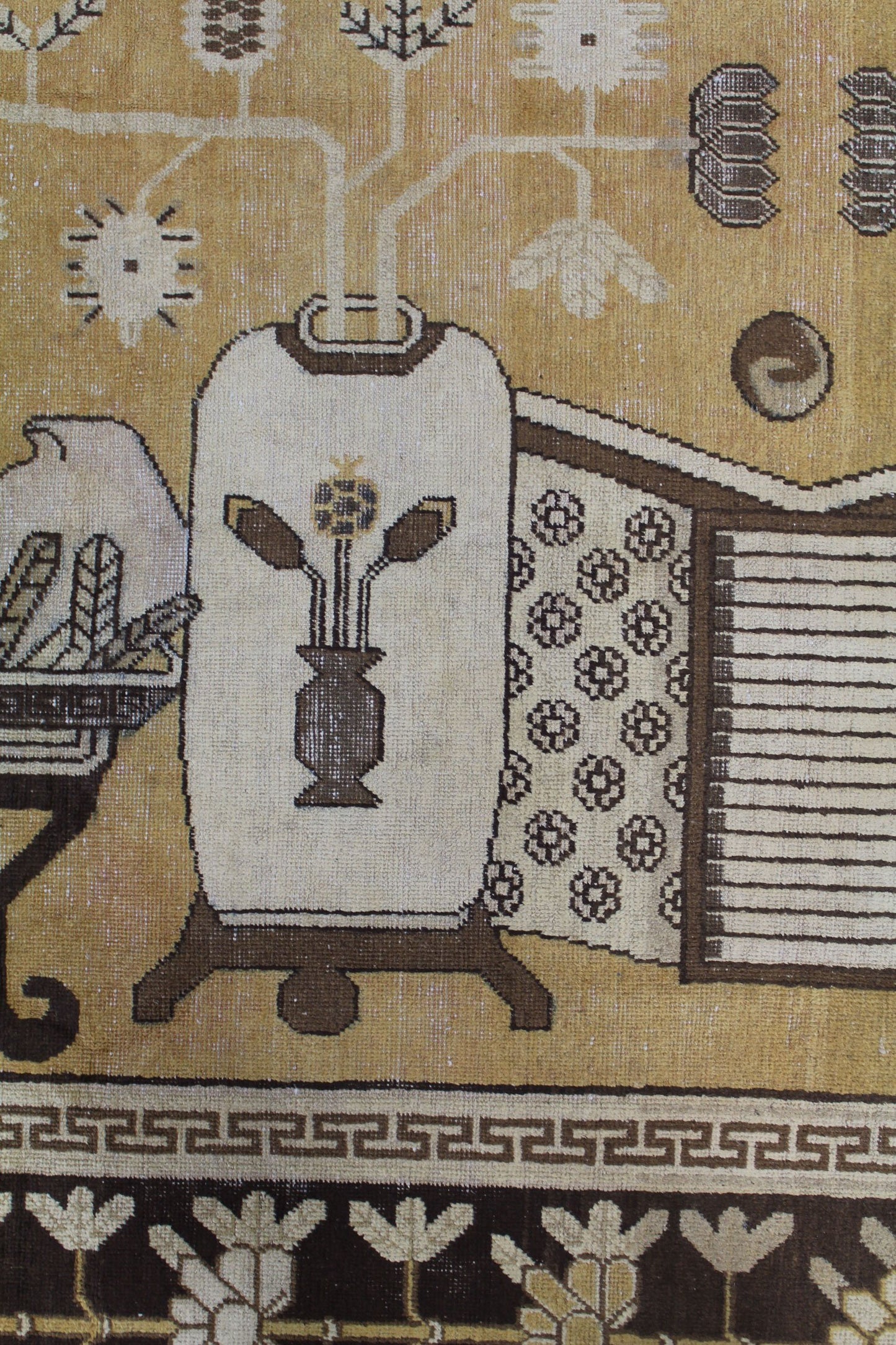 Looking to take your home’s interior design up a notch (or several)? Nothing does it better than a striking statement piece — such as our luxurious Vintage Khotan Handwoven Traditional Rug (J62839). This 5' 4" X 10' 9" traditional Khotan rug has a Khotan design in yellow, gold and brown. Constructed of wool pile on a cotton foundation, you know that this rug not only looks great but feels nice and will stand the tests of time and traffic. Quality and style are hallmarks of vintage (circa 1920) handwoven Central Asian rugs — so you’ll be admiring this one for years to come! All you have to do is claim your Vintage Khotan Handwoven Traditional Rug today.
