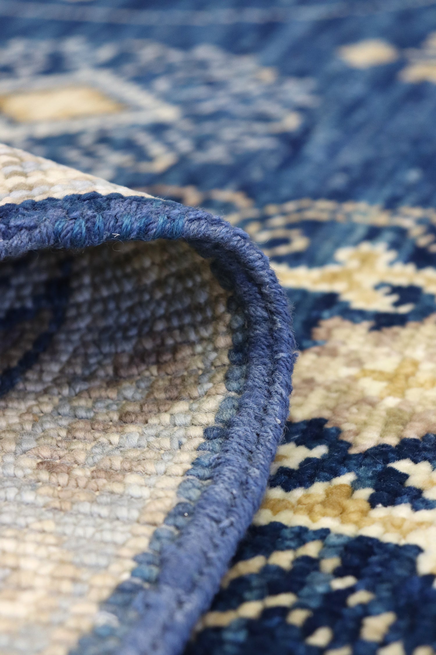 The yarn used in the "Soft Melody" rug possesses a distinctive feature – it is a single-ply yarn. Unlike the more common two-ply yarns, each knot incorporates a single thread, creating a thicker and denser yarn. The use of an asymmetrical Persian-type knot adds to the rug's tactile and visual appeal, resulting in a denser and nubbier texture with pronounced knots.