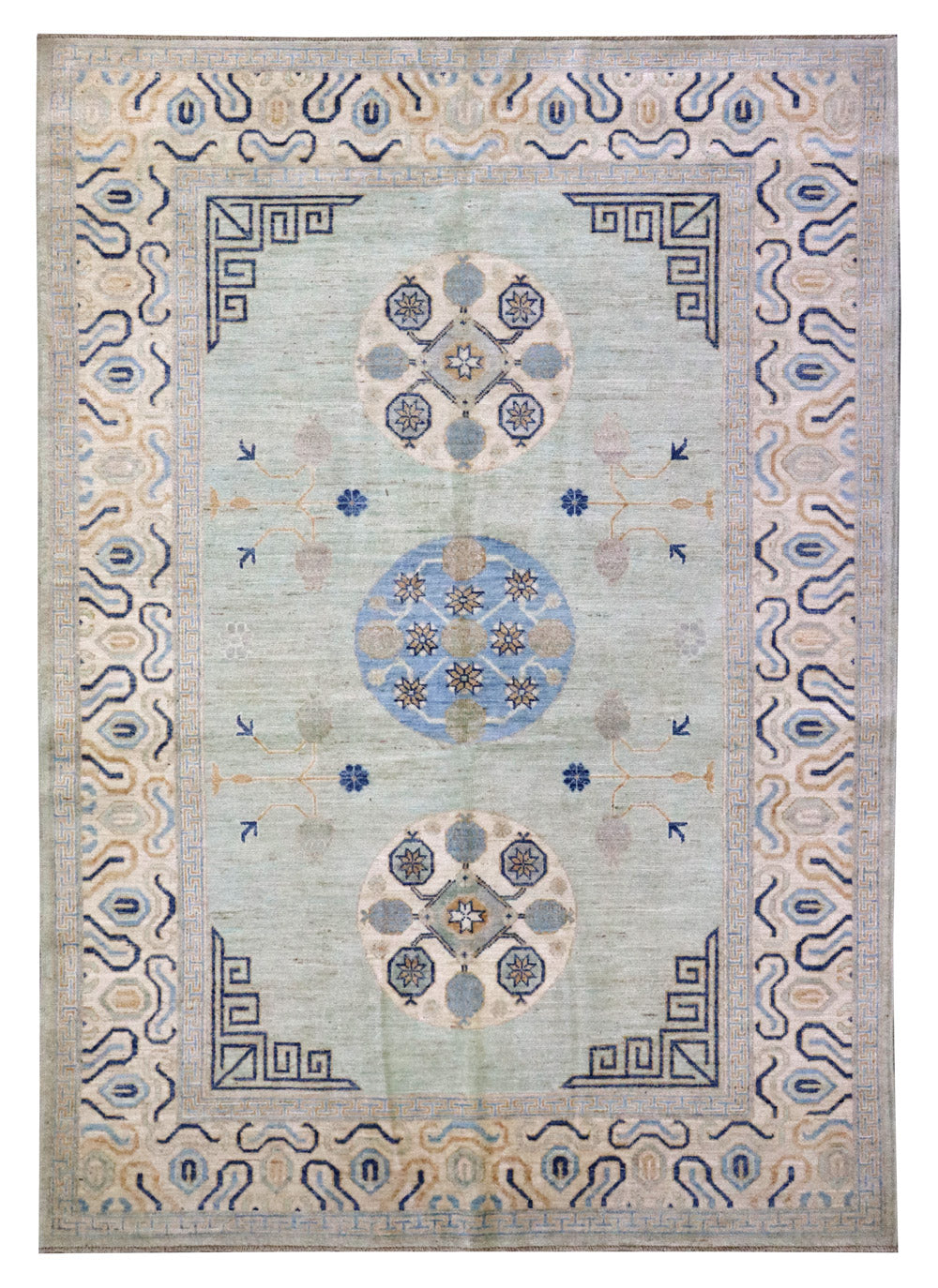 Change things up — transform your space with our amazing Khotan Handwoven Traditional Rug (J67235). This new 6' 1" X 8' 9" rug is in the traditional Chinese & East Asian style and features a stunning Khotan design that you’ll absolutely love. This rug is primarily green on seafoam with ivory accents. You’ll also appreciate the wool pile on a cotton foundation, which feels great underfoot! As with other handwoven Afghani rugs, this one’s made to last. You’ll be enjoying the elements of interest and sophistication it adds to your home for years. Don’t delay — refresh your room today with your own Khotan Handwoven Traditional Rug.