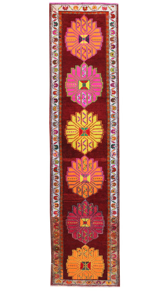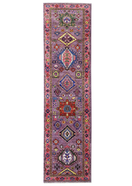 Two prominent hexagonal medallions are positioned equidistantly along the vertical axis, serving as focal points within the rug's design. These medallions are intricately woven, showcasing the skilled craftsmanship and artistic heritage of Khotan weavers. The combination of symmetrical motifs, high pattern density, and intricate border detailing makes this rug a striking example of traditional Khotan weaving.