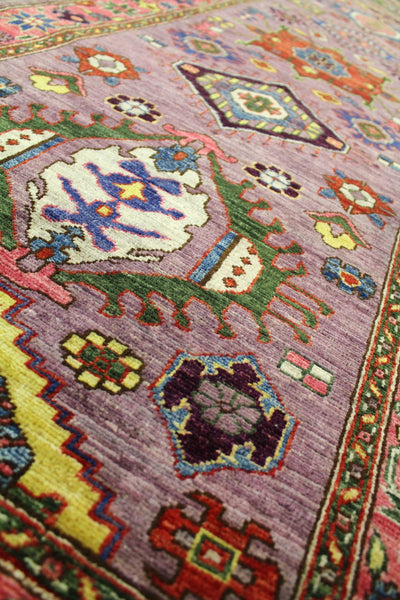 The rug's symmetrical design contributes to its balanced and harmonious appearance, with mirrored motifs along both the horizontal and vertical axes. The pattern density is notably high, especially in the central field where small motifs and design elements are closely spaced, minimizing plain or empty spaces. This dense patterning adds to the rug's richness and visual interest.