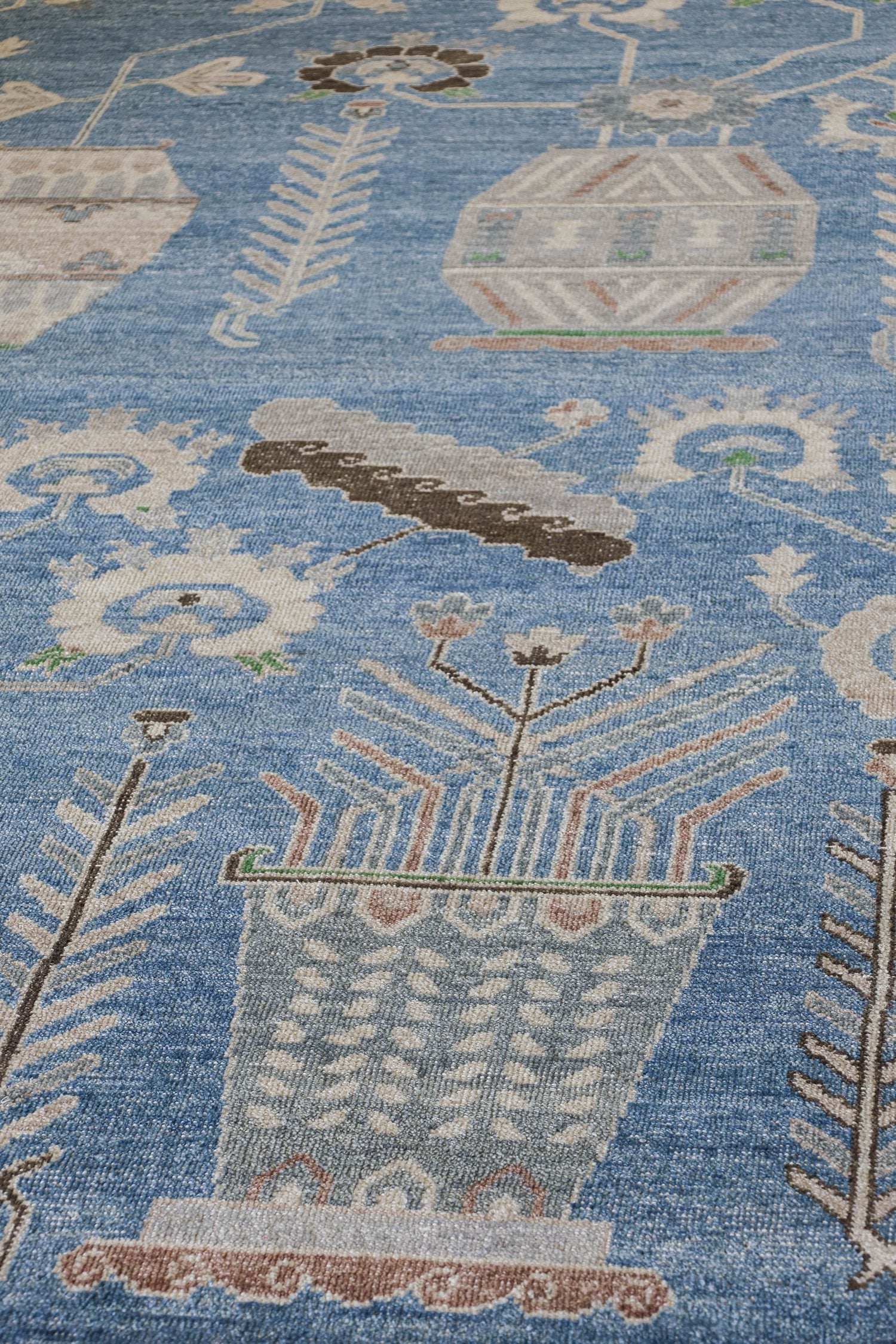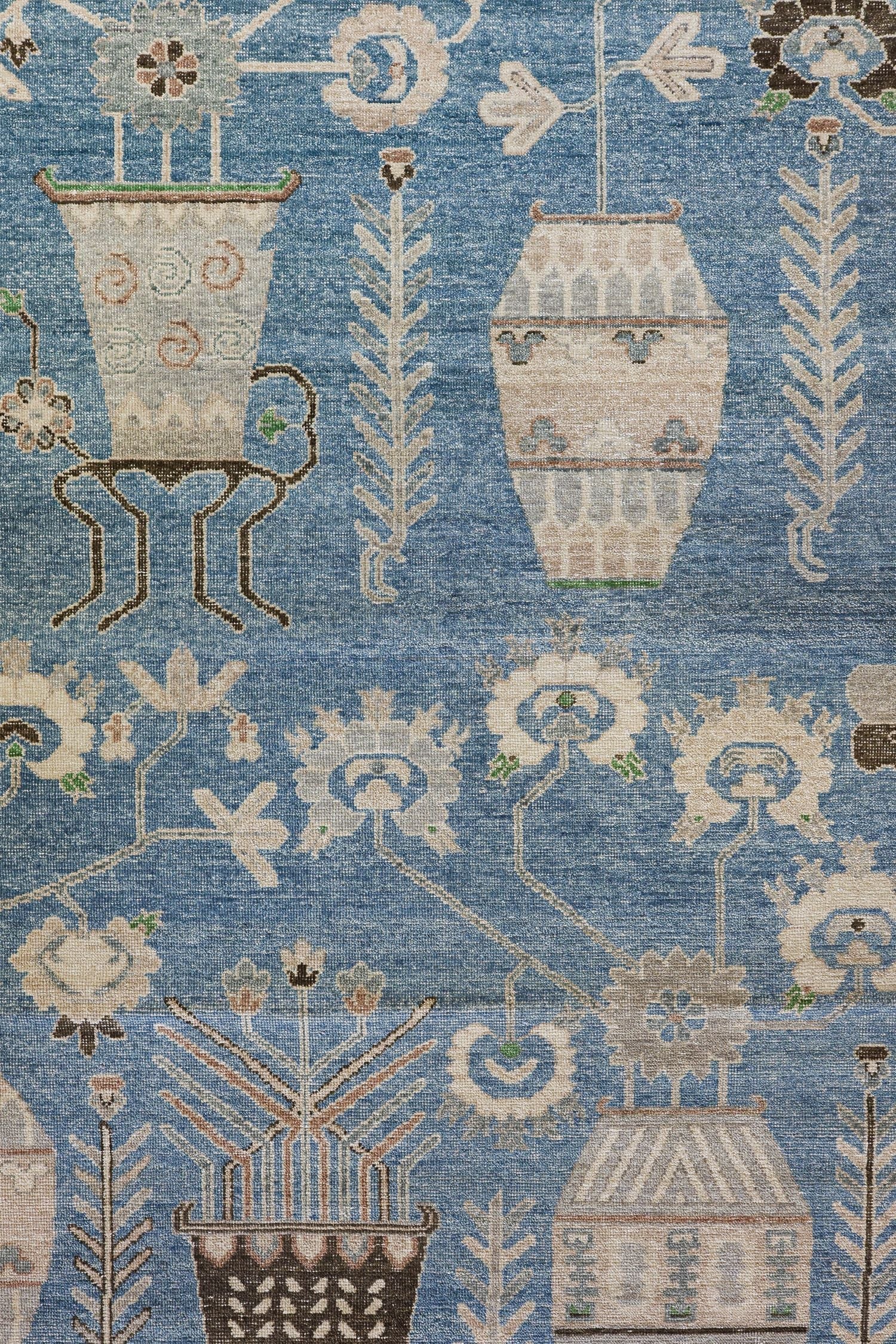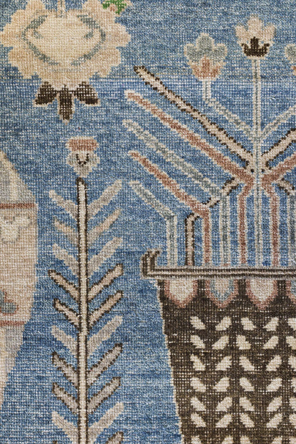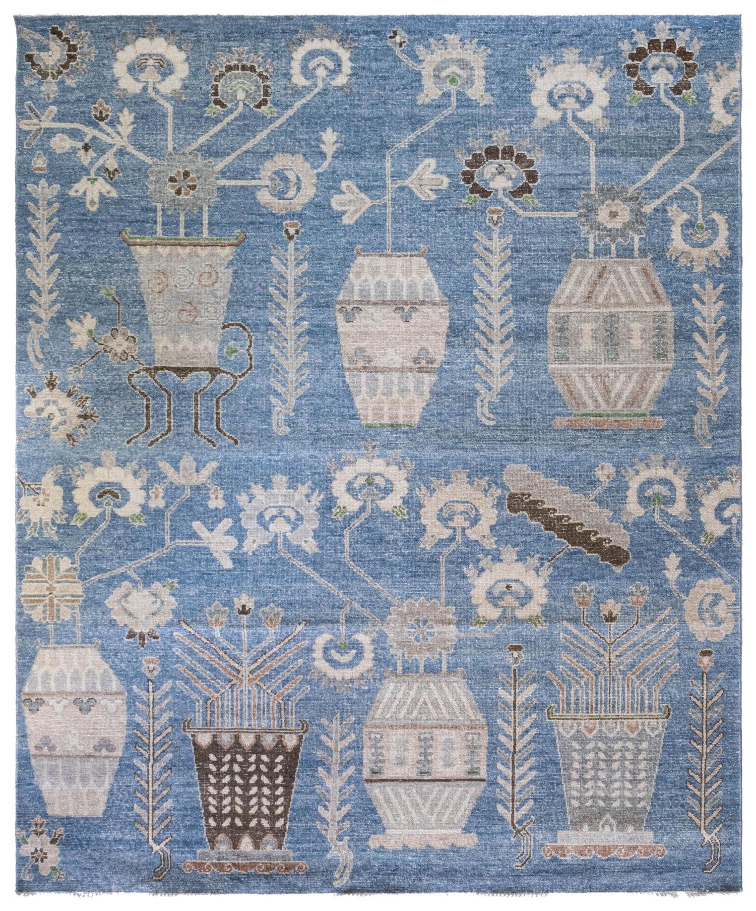 New Overdyed & Distressed Transitional Indian Khotan Vase 8' 1" X 9' 11" Blue Rug