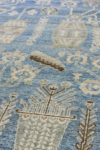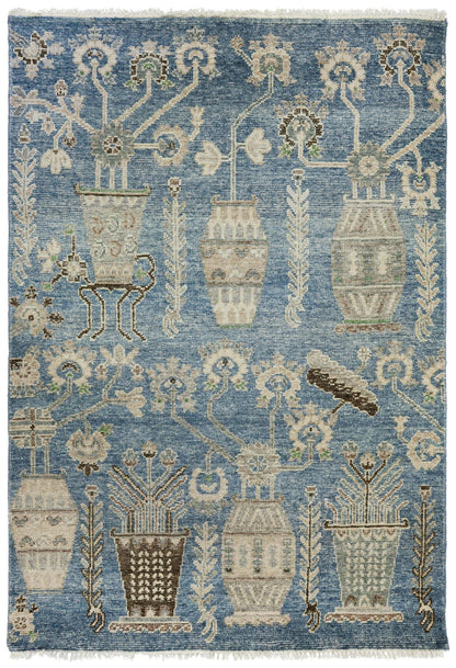 New Overdyed & Distressed Transitional Indian Khotan Vase 4' 2" X 6' 0" Blue Rug
