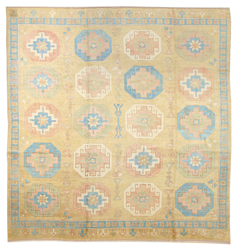 Get ready to fall in love with our Konya Handwoven Tribal Rug (J24083)! This tribal Nomadic Persian & Turkish piece is yellow on soft yellow with blue accents. The Konya design and 11' 7" X 12' 8" size make this new handwoven Turkish rug a gorgeous addition to any space. Its wool pile surface on a wool foundation means this rug is incredibly durable — you’ll be able to cherish it for years to come. Get your Konya Handwoven Tribal Rug today!