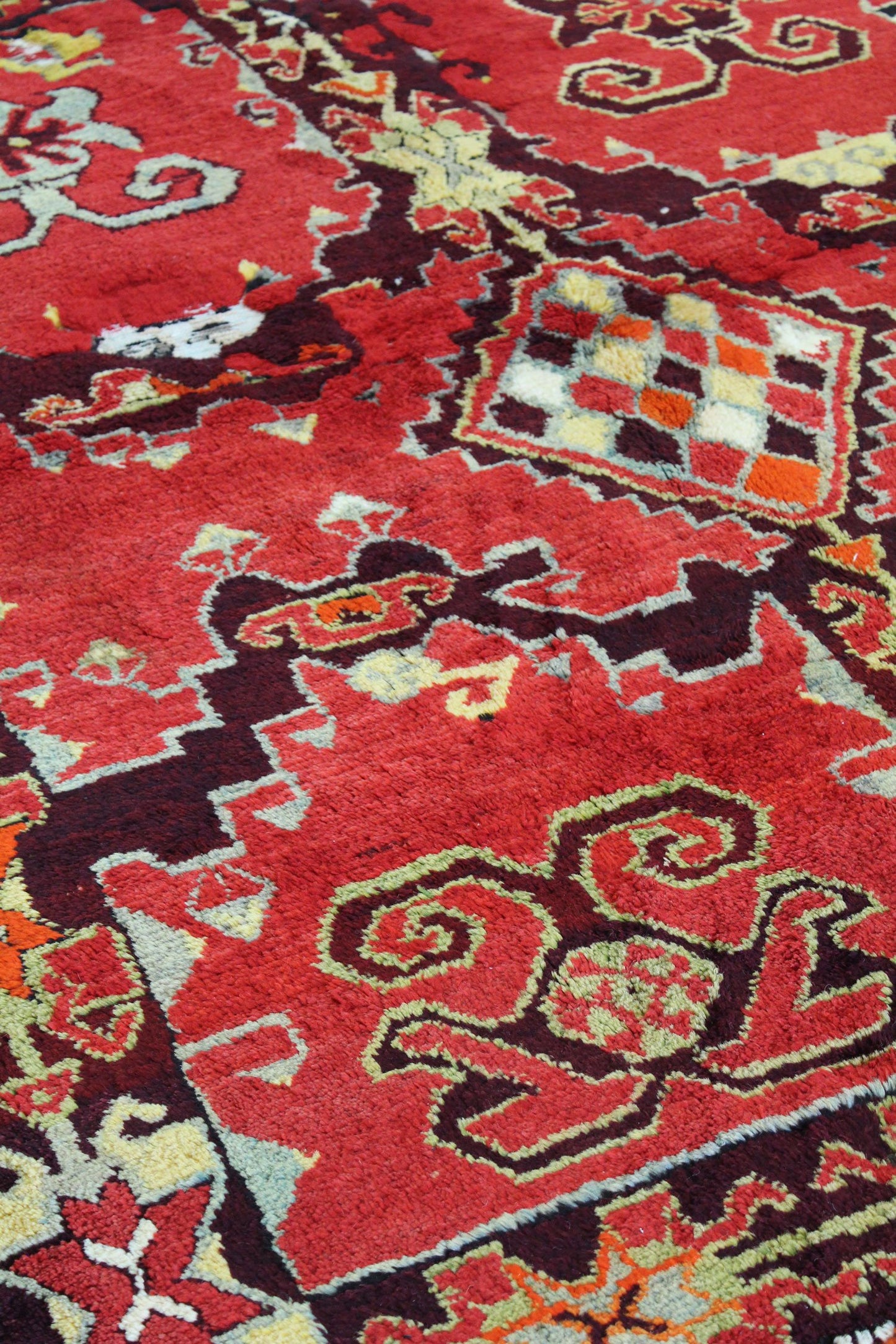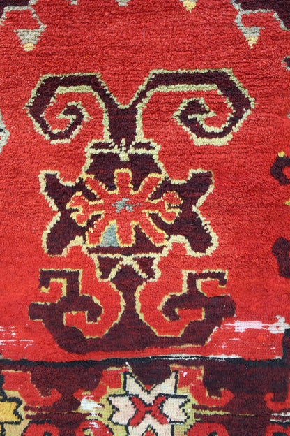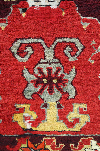 Looking to take your home’s interior design up a notch (or several)? Nothing does it better than a striking statement piece — such as our luxurious Vintage Konya Handwoven Tribal Rug (J63051). This 5' 3" X 6' 4" tribal Nomadic Persian & Turkish rug has a Konya design in red and aubergine. Constructed of wool pile on a cotton foundation, you know that this rug not only looks great but feels nice and will stand the tests of time and traffic. Quality and style are hallmarks of vintage (circa 1920) handwoven Turkish rugs — so you’ll be admiring this one for years to come! All you have to do is claim your Vintage Konya Handwoven Tribal Rug today.