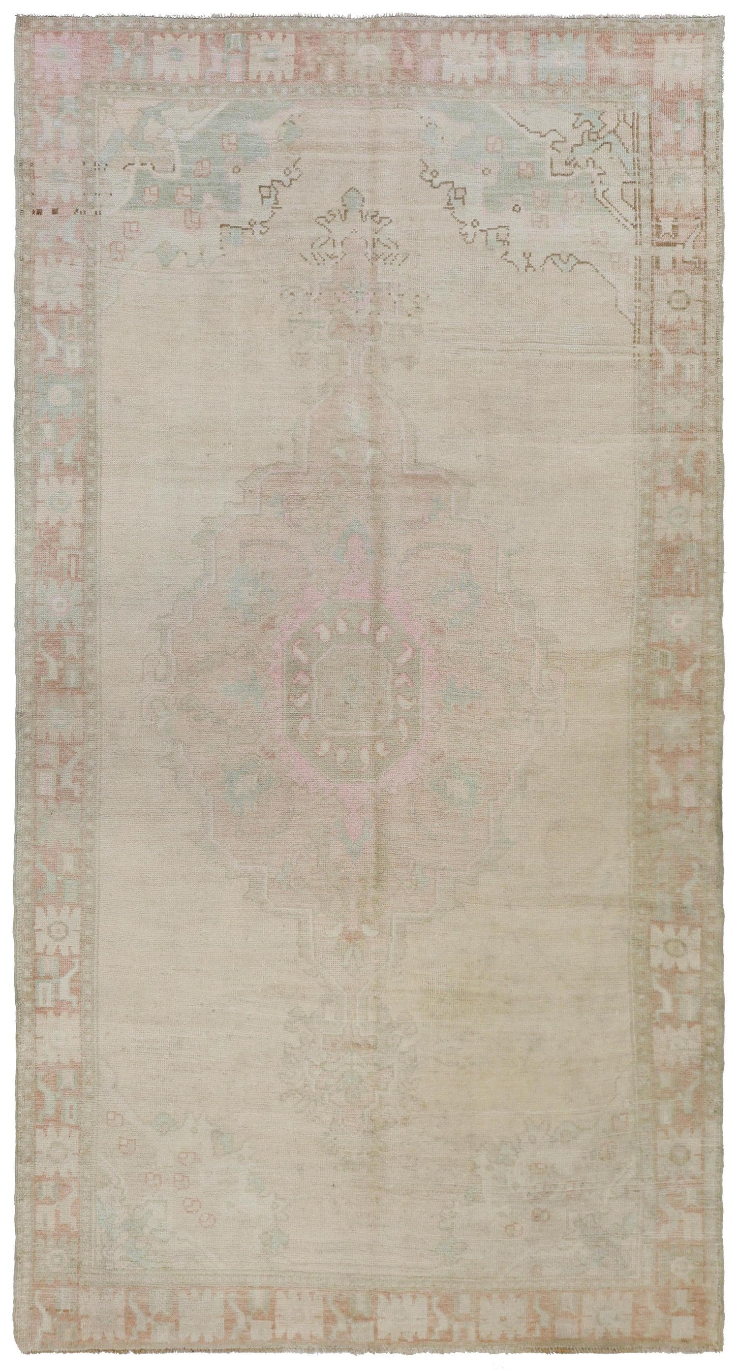 Vintage 1960 Vintage Turkish Village Tribal Turkish Konya 4' 7" X 8' 7" Beige Rug