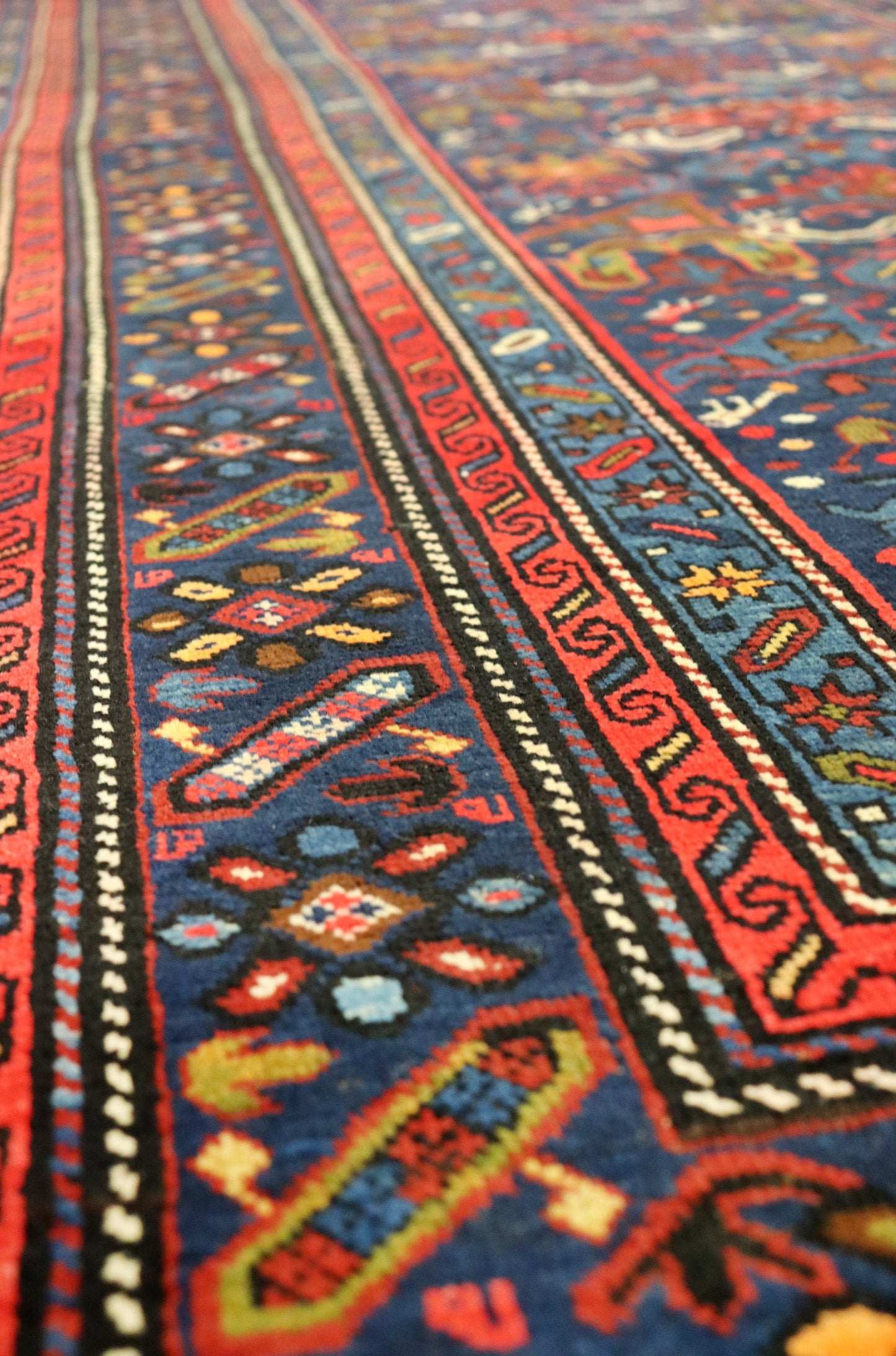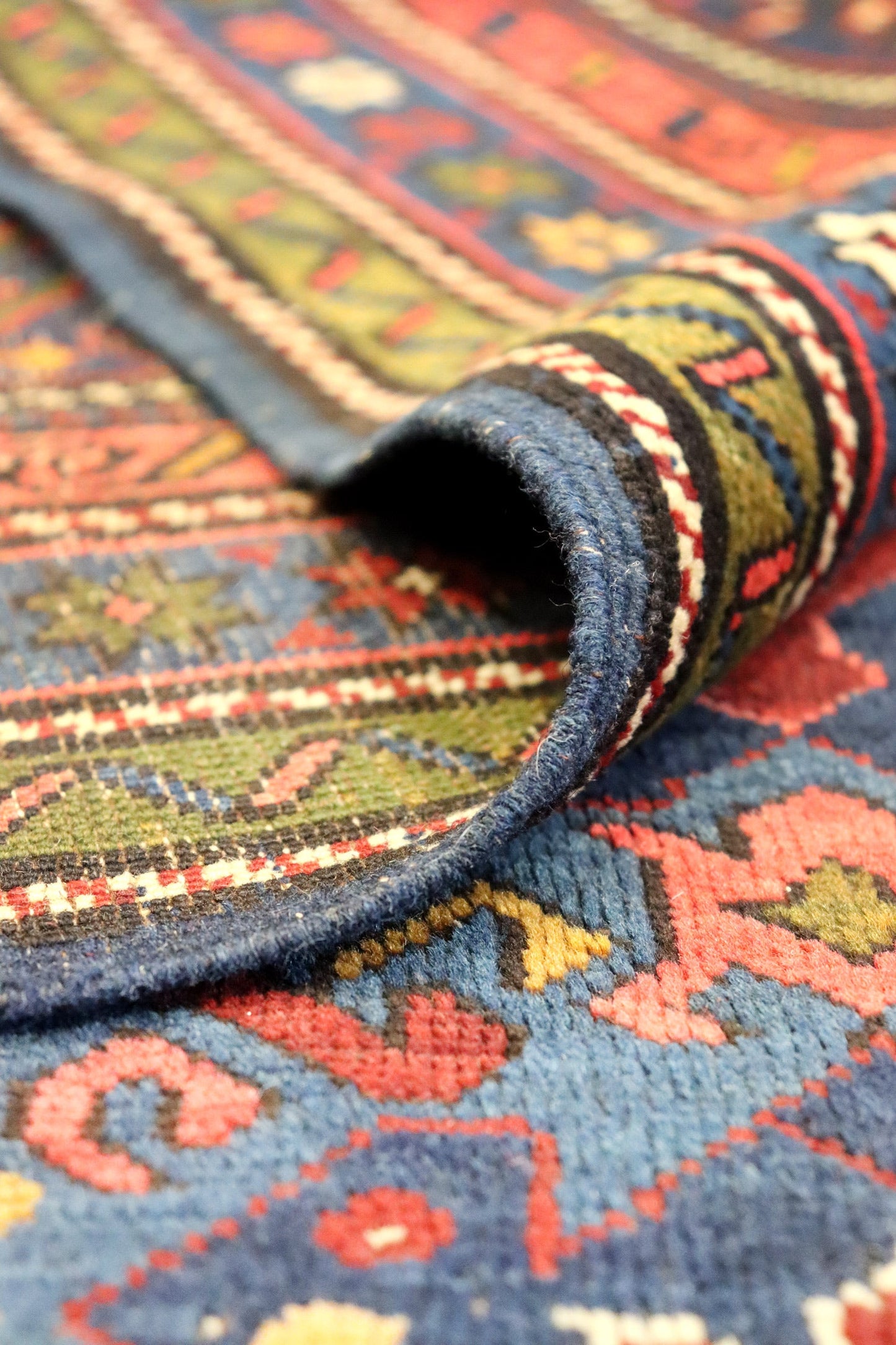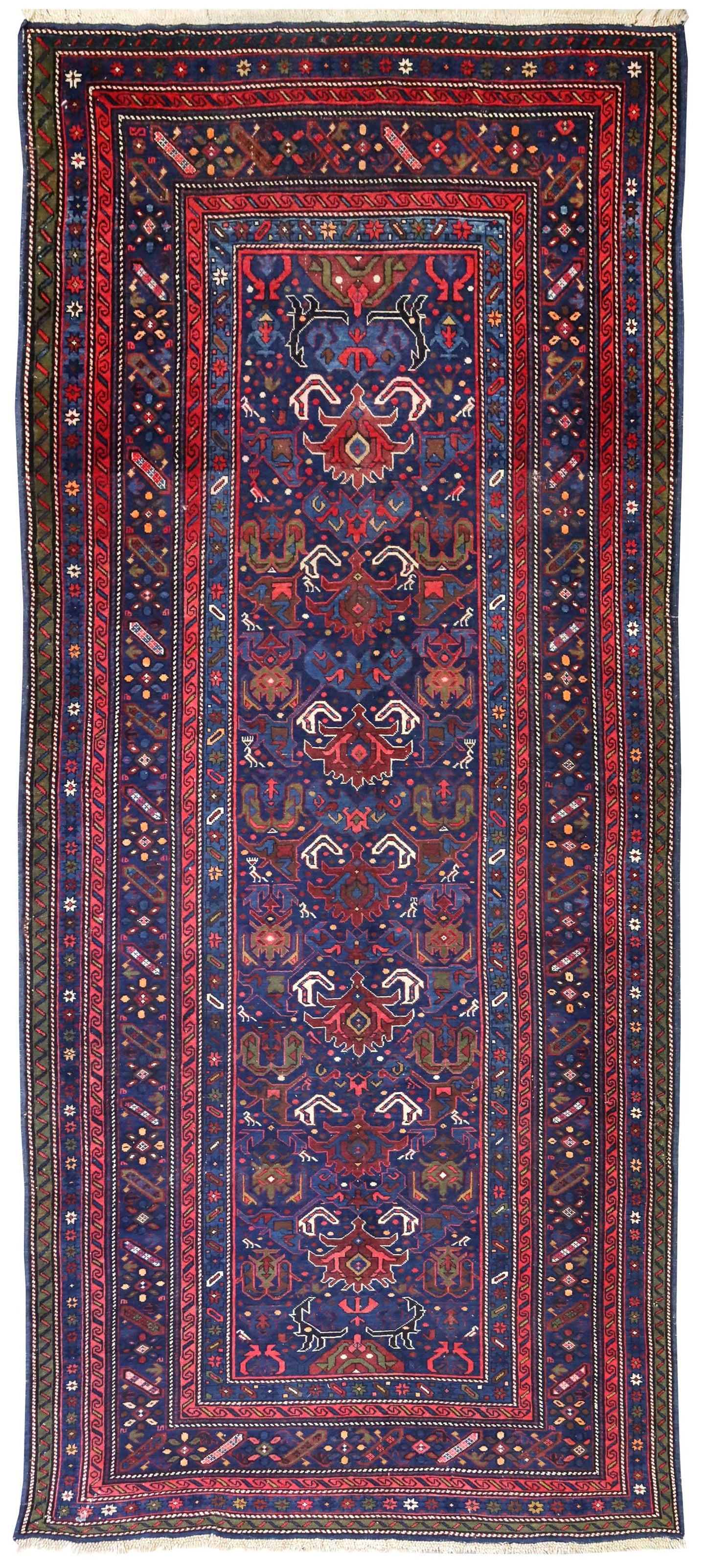 Show off your exquisite taste with our beautiful Antique Kuba Handwoven Tribal Rug (J65242). It’s a prime example of a tribal Caucasian done right and will add a unique, polished look to your space. Crafted mainly in blue and complemented with navy and red, the Kuba design really pops. The wool pile surface is resilient yet comfortable and the wool foundation provides a sturdy base. This 5' 2" X 11' 8" handwoven rug is of antique construction (circa 1910) and Caucasian origin. All in all, you’re going to love this piece and it’s going to be the perfect addition to your home. Make it happen today — with your own Antique Kuba Handwoven Tribal Rug.