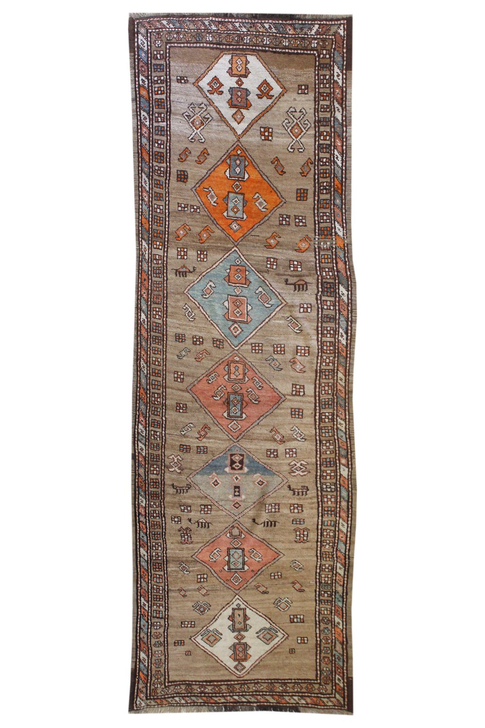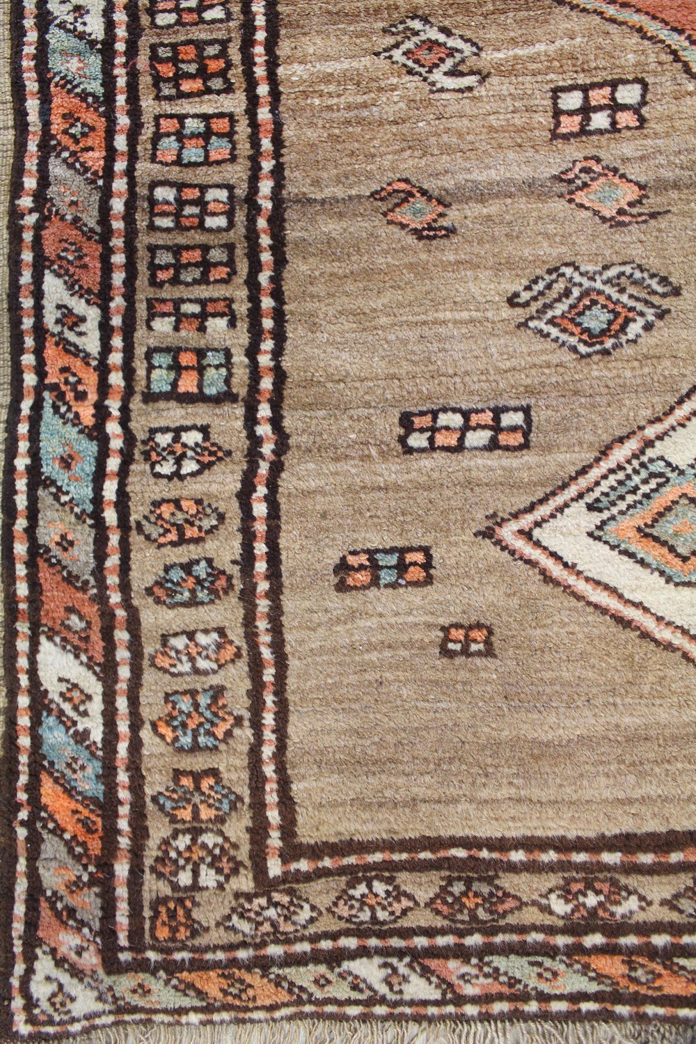 Elevate your room’s style with our Antique Kurd Bijar Handwoven Tribal Rug (JF8205). The tribal Nomadic Persian & Turkish style, with its Kurd Bijar motif, is definitely a stunner that you’ll be proud to show off in your home. Its distinctive brown, camel and salmon palette will add charm, elegance, and that little bit of that ever-elusive je ne sais quoi. Plus, the wool pile on a wool foundation used in this 4' 8" X 11' 1" rug accentuates its allure. But, this rug isn’t just worthy of gracing the pages of a design magazine. With its masterful Persian handwoven construction, this antique rug from around 1900 will be a prized possession for decades to come. Get your own show-stopping Antique Kurd Bijar Handwoven Tribal Rug today!