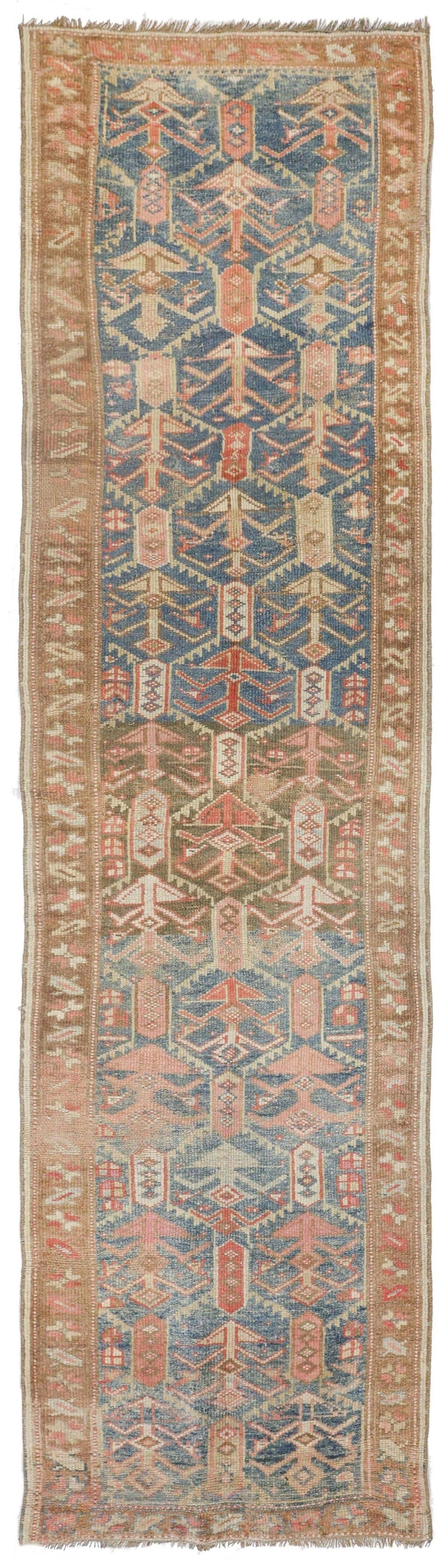 Vintage 1890 Nomadic Persian & Turkish Tribal Persian Kurd 2' 6" X 7' 11" Blue Rug