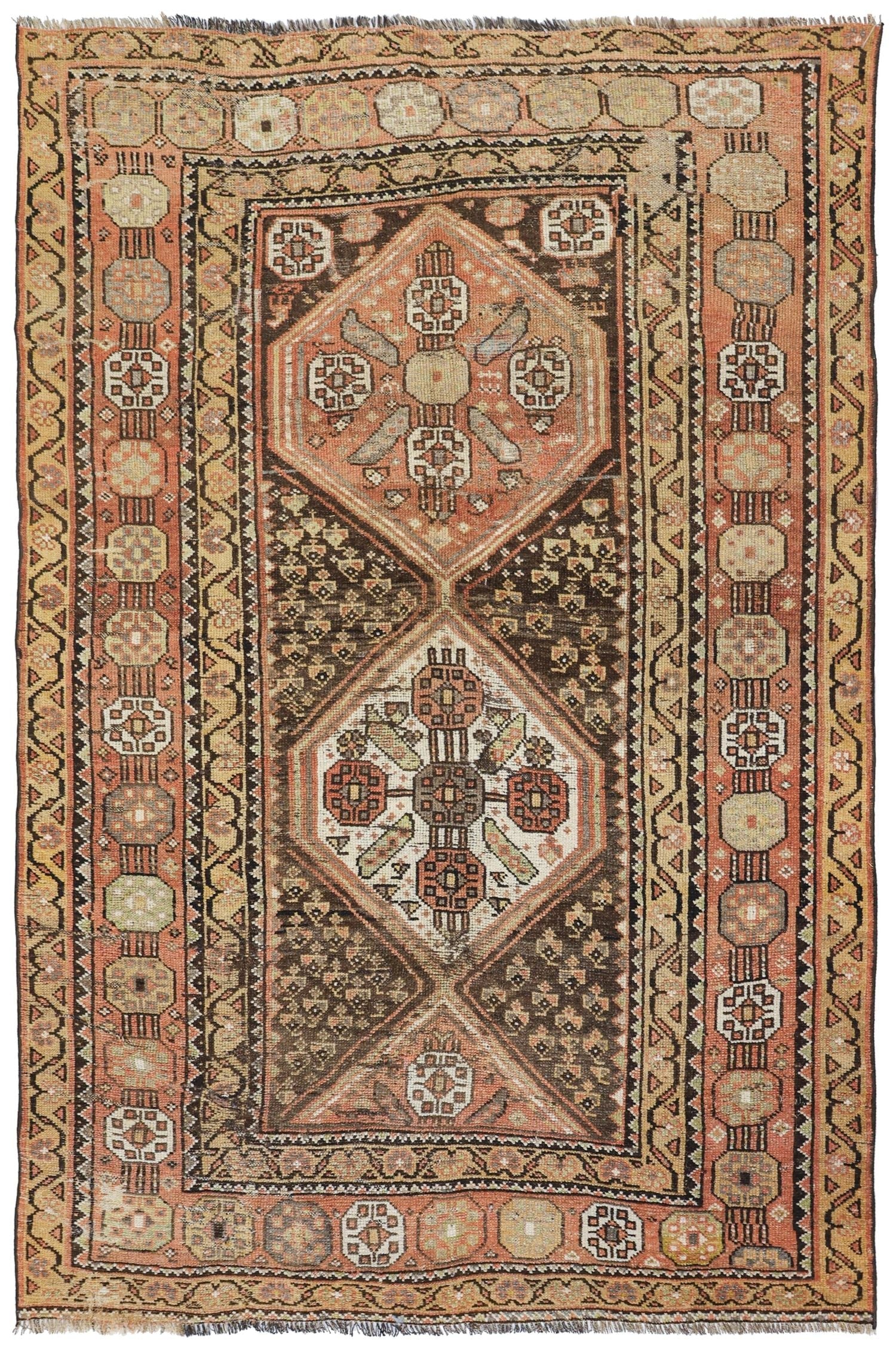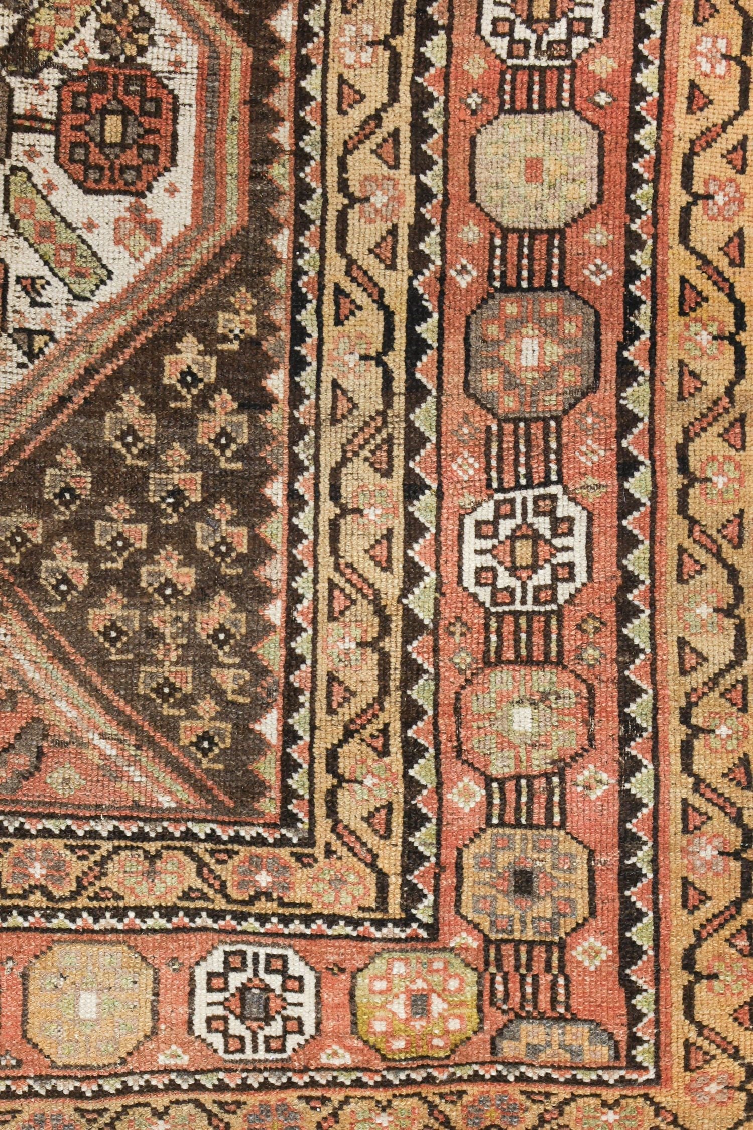 Vintage 1900 Nomadic Persian & Turkish Tribal Persian Kurd 4' 5" X 6' 9" Brown Rug