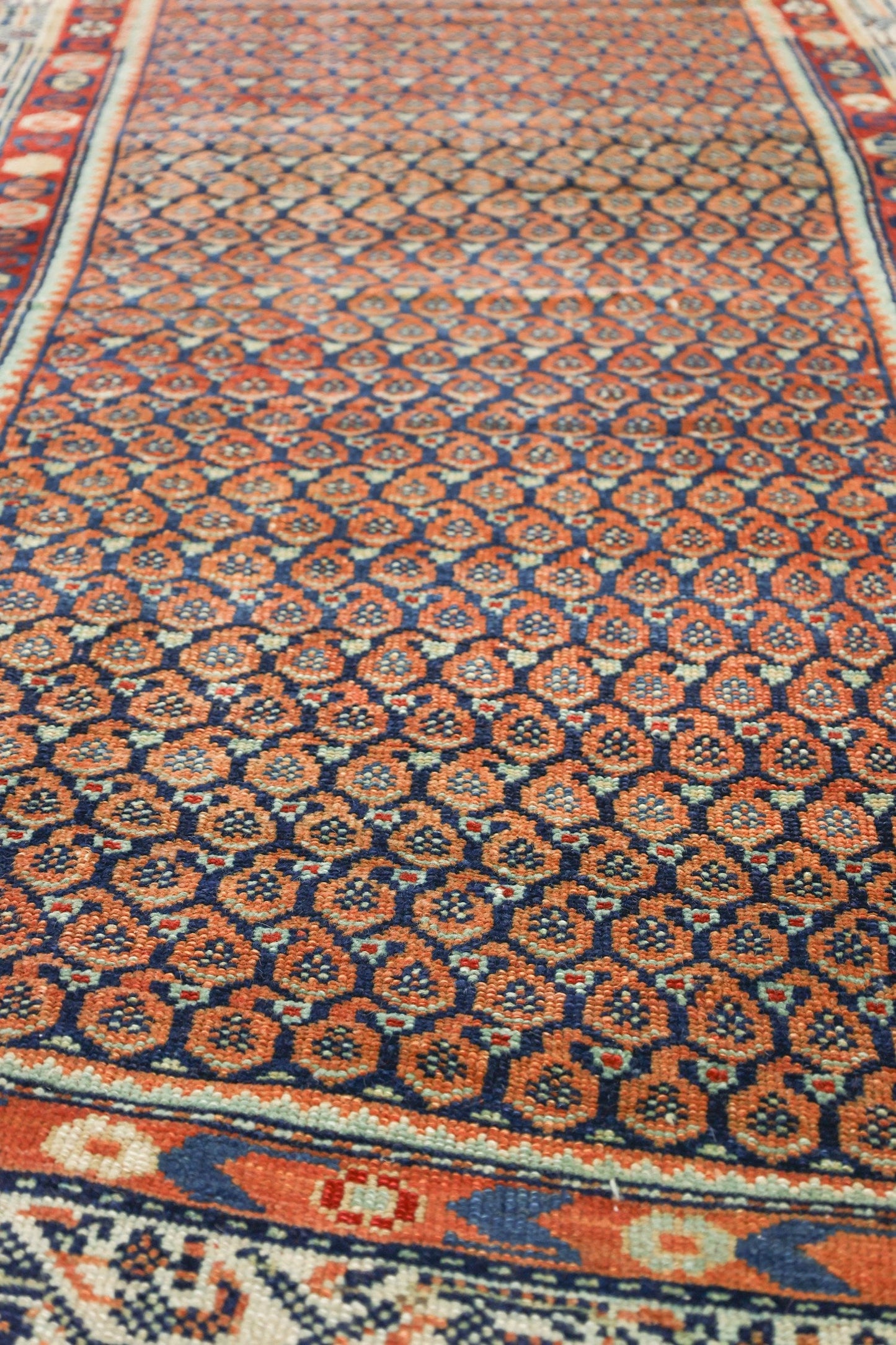 Antique 1900 Nomadic Persian & Turkish Tribal Persian Kurd 3' 2" X 10' 11" Blue Rug