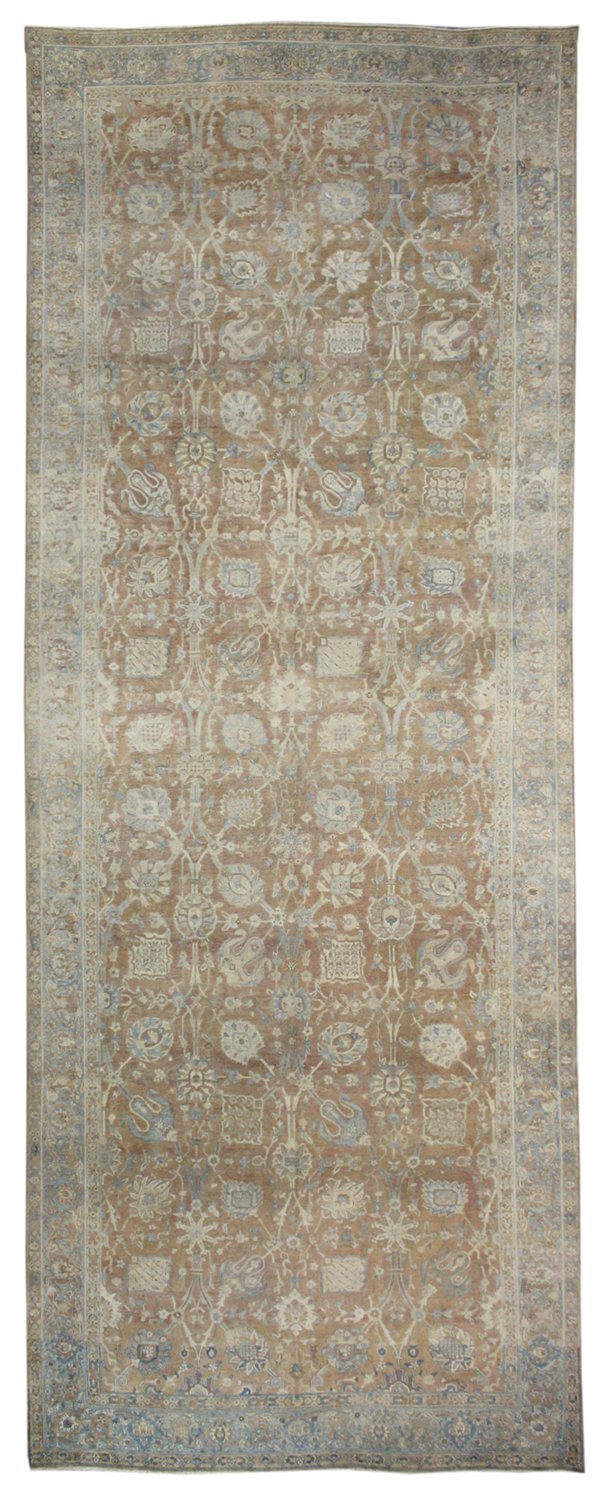 Elevate your room’s style with our Antique Lavar Kerman Handwoven Traditional Rug (JF8063). The traditional Formal Classic Persian style, with its Lavar Kerman motif, is definitely a stunner that you’ll be proud to show off in your home. Its distinctive brown, taupe and light blue palette will add charm, elegance, and that little bit of that ever-elusive je ne sais quoi. Plus, the wool pile on a cotton foundation used in this 8' 0" X 22' 5" rug accentuates its allure. But, this rug isn’t just worthy of gracing the pages of a design magazine. With its masterful Persian handwoven construction, this antique rug from around 1910 will be a prized possession for decades to come. Get your own show-stopping Antique Lavar Kerman Handwoven Traditional Rug today!