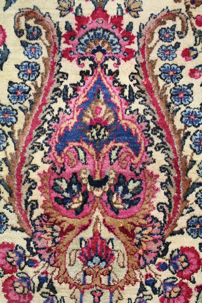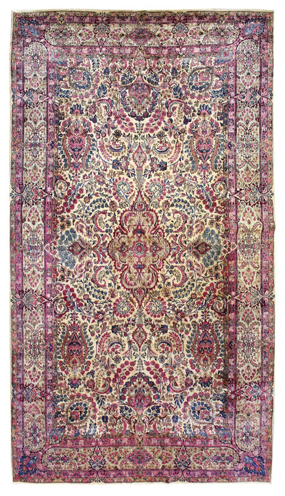 Elevate your room’s style with our Antique Lavar Kerman Handwoven Traditional Rug (JF8137). The traditional Formal Classic Persian style, with its Lavar Kerman motif, is definitely a stunner that you’ll be proud to show off in your home. Its distinctive ivory and pink palette will add charm, elegance, and that little bit of that ever-elusive je ne sais quoi. Plus, the wool pile on a cotton foundation used in this 9' 9" X 17' 5" rug accentuates its allure. But, this rug isn’t just worthy of gracing the pages of a design magazine. With its masterful Persian handwoven construction, this antique rug from around 1925 will be a prized possession for decades to come. Get your own show-stopping Antique Lavar Kerman Handwoven Traditional Rug today!