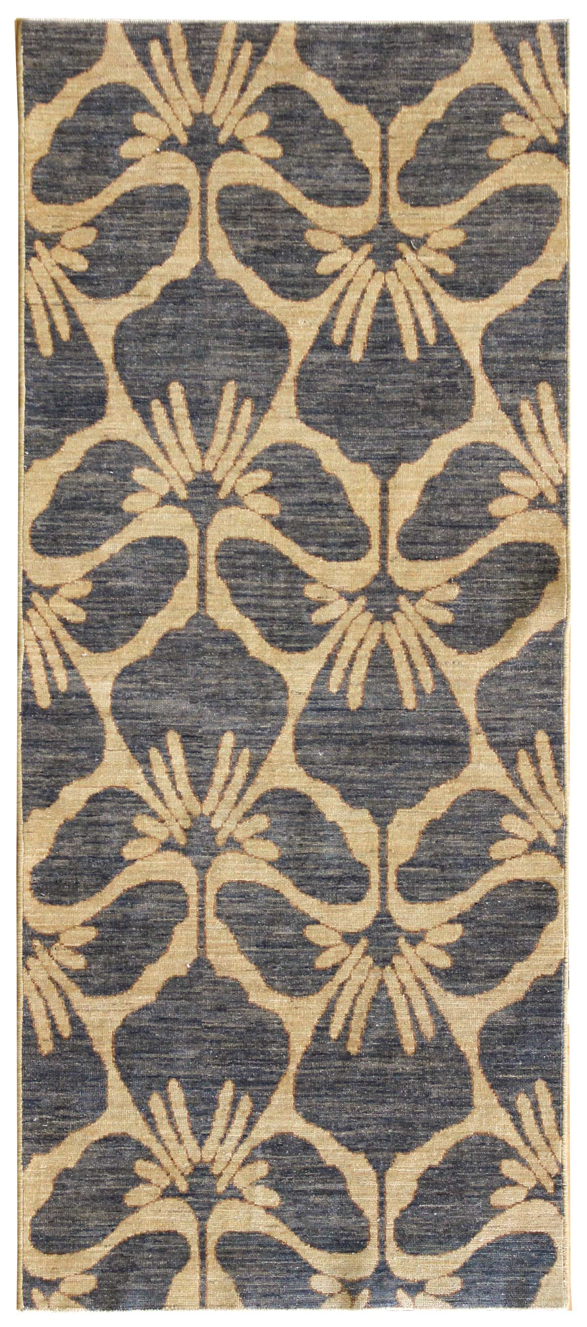 Make a grand statement in your home with our stunning Lily Handwoven Contemporary Rug (J38518). This contemporary handwoven Afghani rug has an alluring Botanical style with its Lily design in rich hues of blue, slate and ivory. Wool pile on a cotton foundation make this new rug both sturdy and comfortable to the touch. At 2' 9" X 6' 5" in size, this rug will add just the right amount of pizzazz to any room. All in, you’ll be loving this rug today, tomorrow, and beyond. So, go ahead — get your Lily Handwoven Contemporary Rug today!