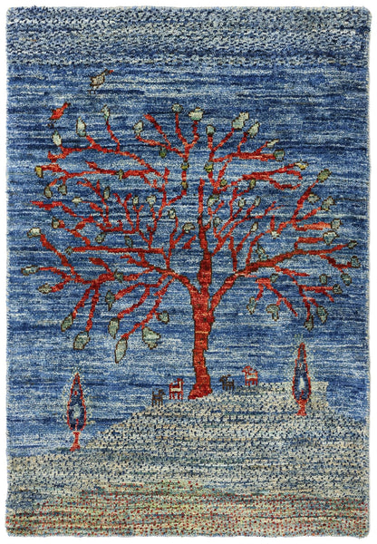 New Tribal Afghani Luri Trees 2' 0" X 2' 10" Blue Rug