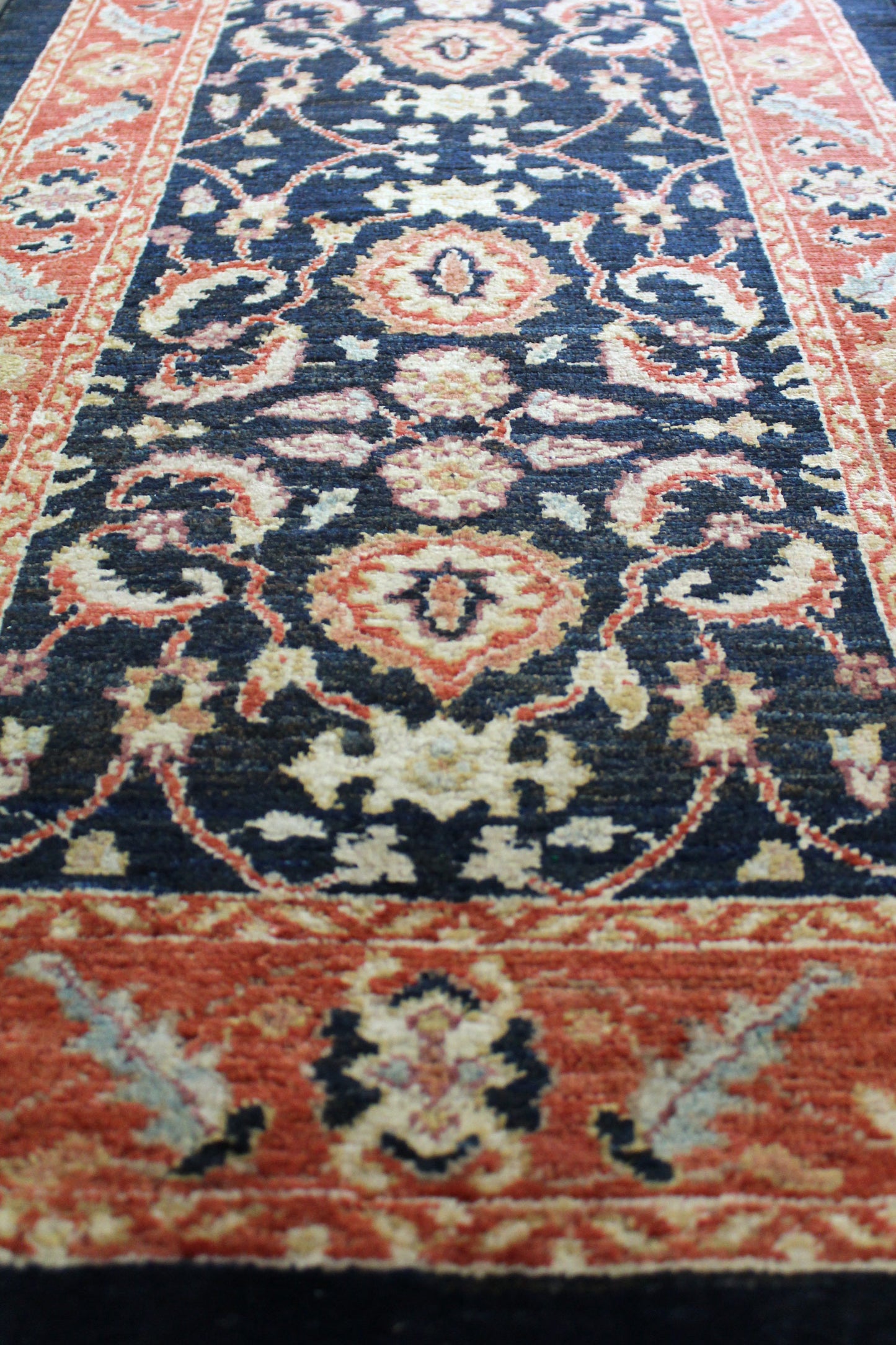 Opt for opulence and establish your signature style with the striking Mahal Handwoven Traditional Rug (J57545). As a 2' 6" X 11' 10" rug that's traditional and formal classic persian in style, you know that this piece can instantly tie the look of your space together. The rug's mahal design will effortlessly complement and elevate your home's interior. Better still, the blue, navy and rust will flatter any décor. This new handwoven Pakistani rug is constructed of wool pile and a cottonfoundation, so it’ll not only look outstanding and perfect in your home — it’ll last for generations. Bring home your Mahal Handwoven Traditional Rug today!