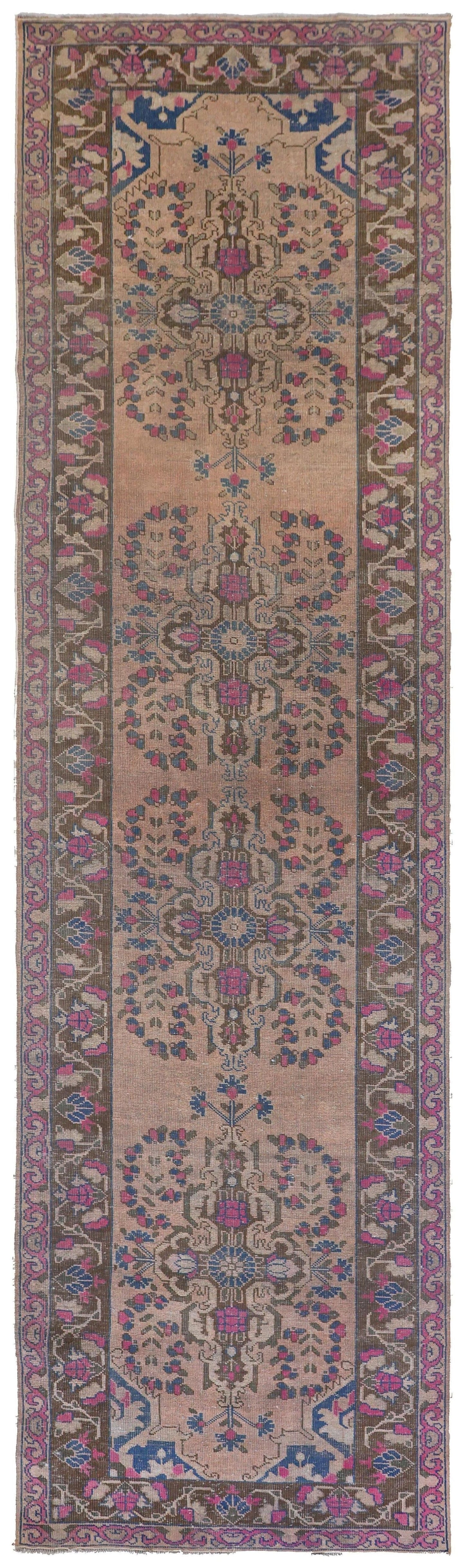 Vintage 1940 Large Scale Floral Traditional Persian Mahal 3' 8" X 12' 9" Purple Rug