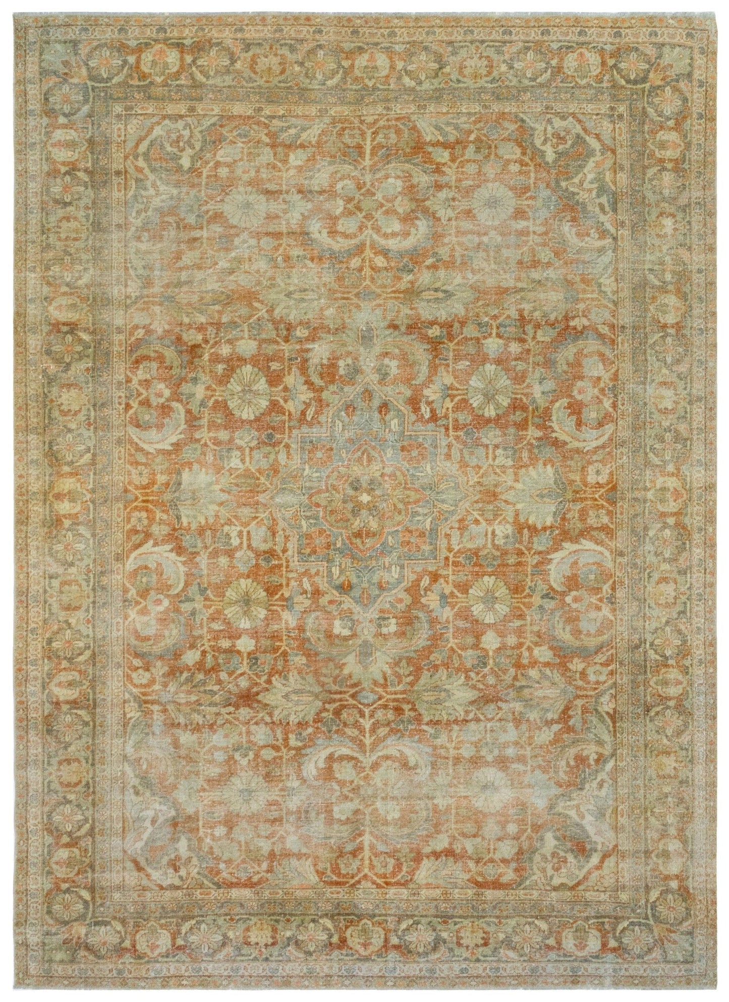Vintage 1930 Large Scale Floral Traditional Persian Mahal 8' 9" X 12' 0" Orange Rug