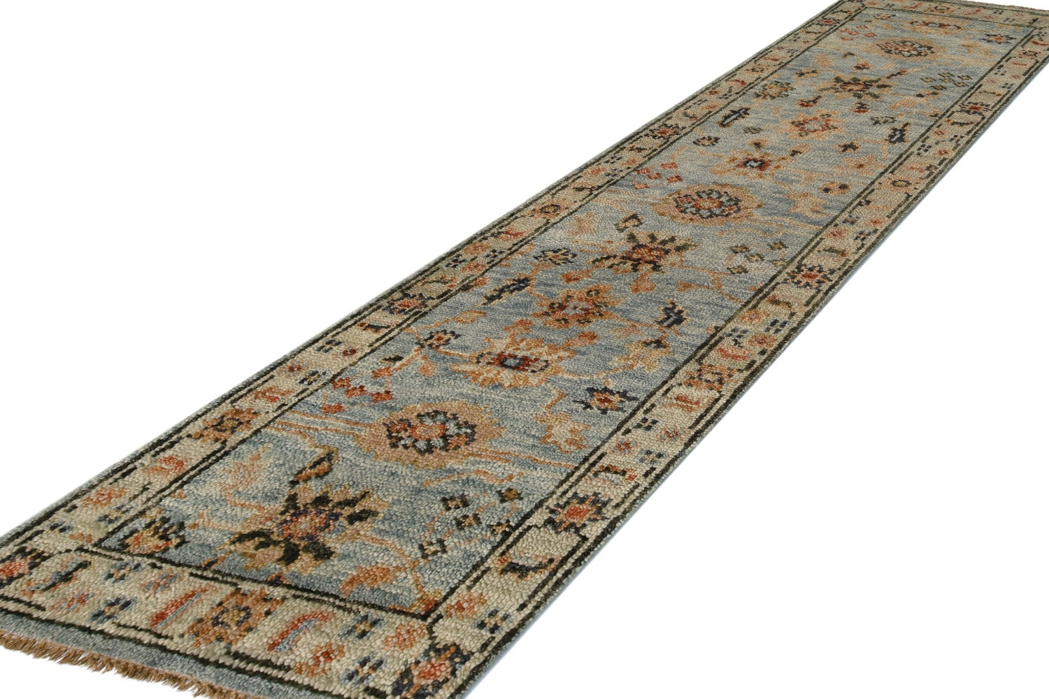 New Large Scale Floral Traditional Indian Mahal Runner 2' 6" X 7' 11" Blue Rug