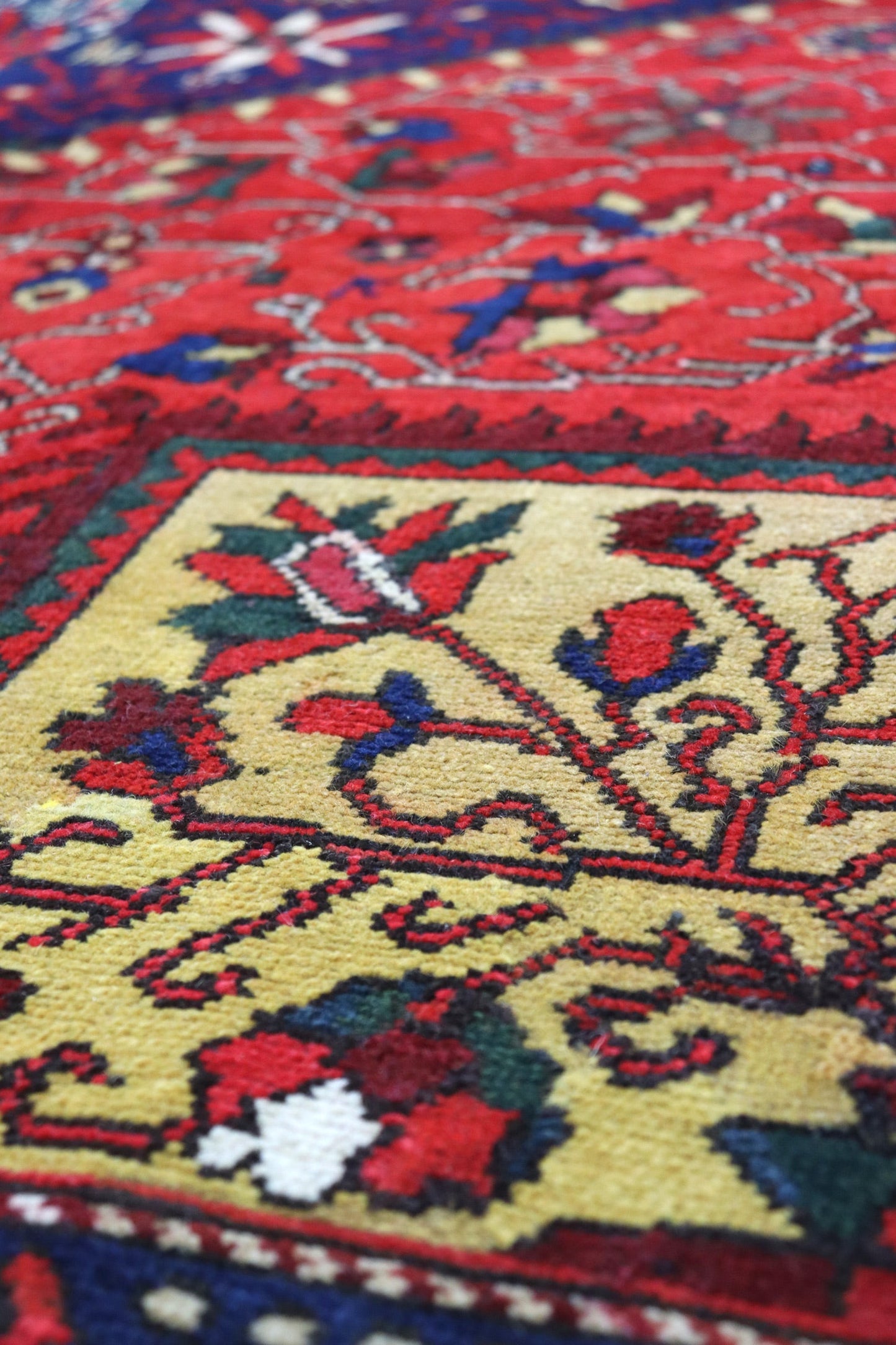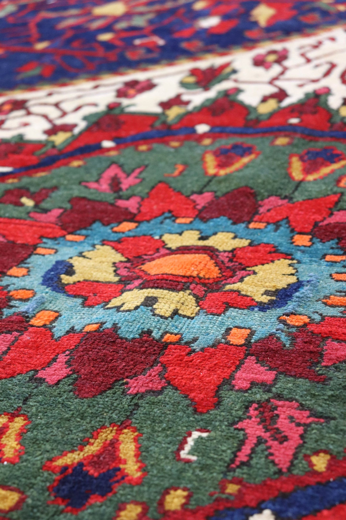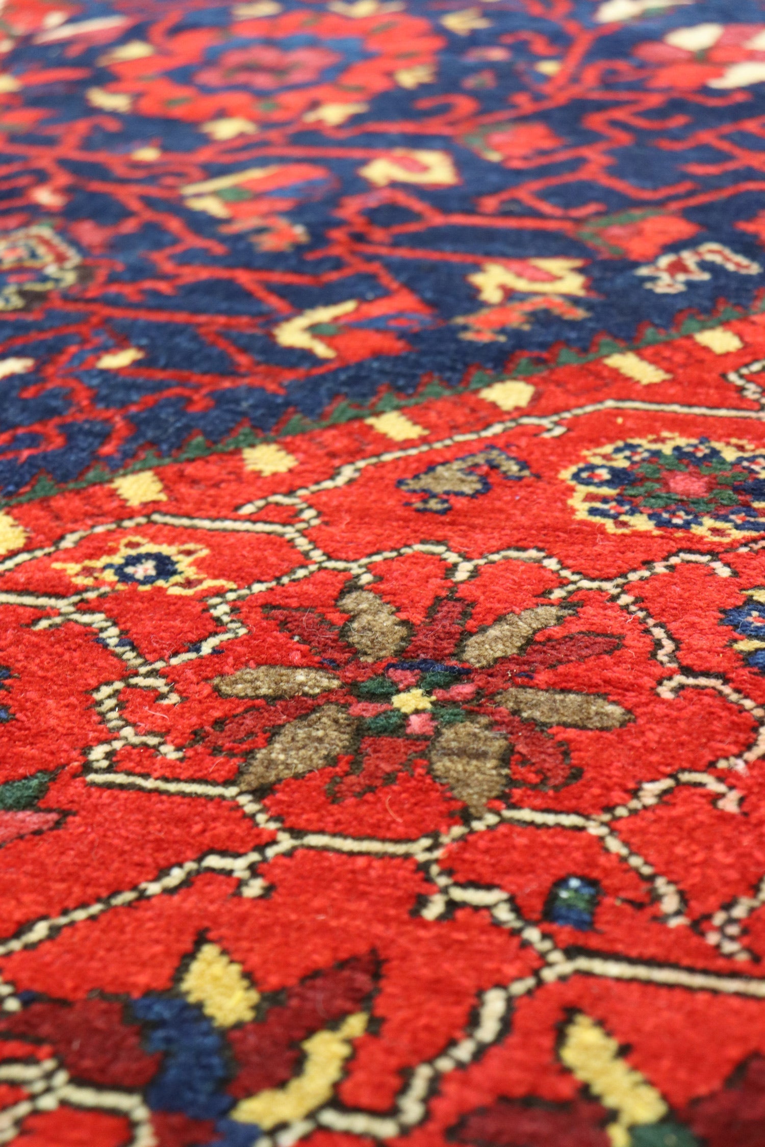 Rich in detail and color, this antique Persian Malayer rug not only offers a glimpse into the weaving traditions of the Malayer region but also serves as a beautiful example of early 20th-century Persian textile artistry.