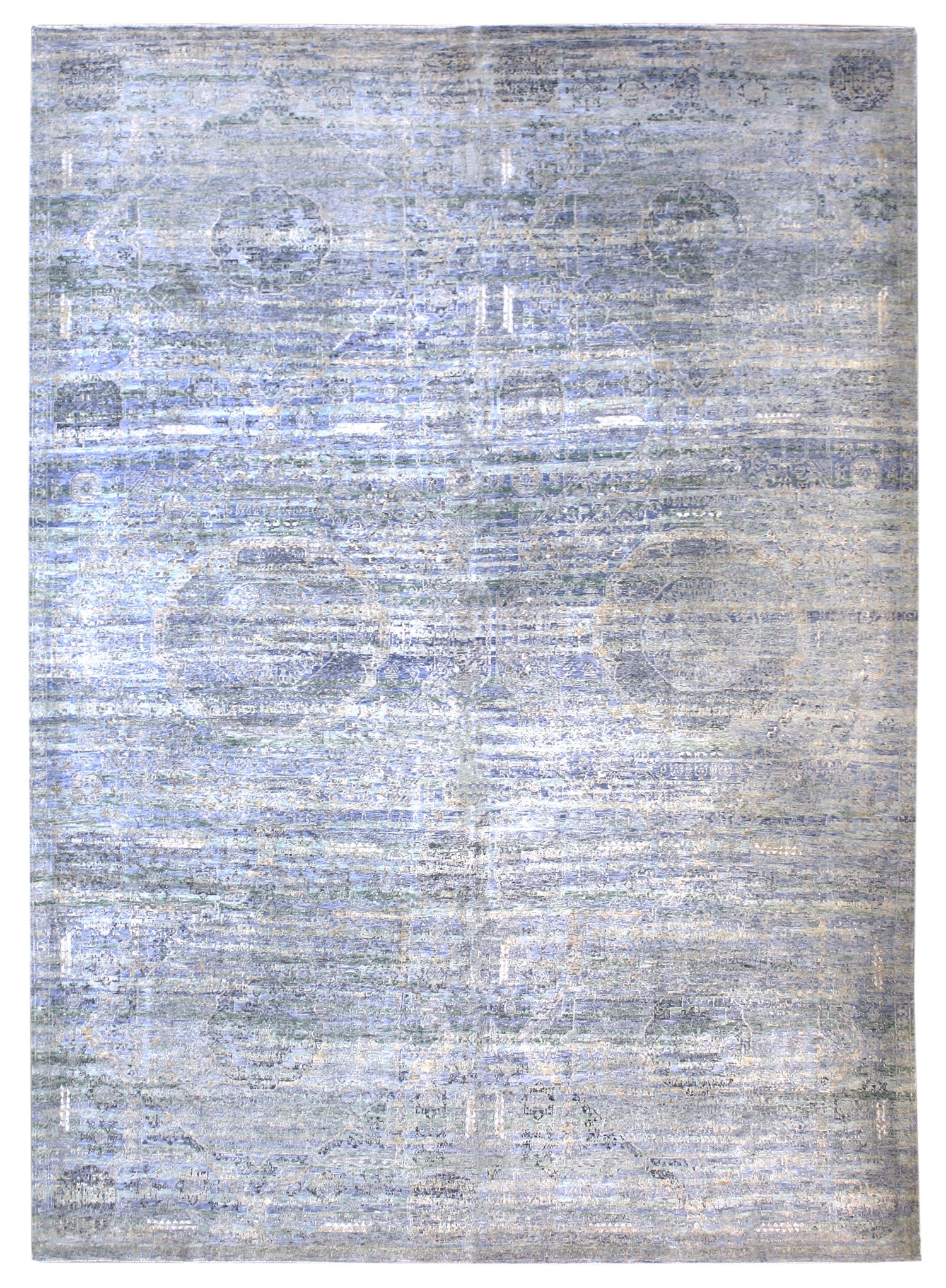 Opt for opulence and establish your signature style with the striking Mamluk Handwoven Transitional Rug (J56479). As a 10' 2" X 14' 0" rug that's transitional and erased in style, you know that this piece can instantly tie the look of your space together. The rug's mamluk design will effortlessly complement and elevate your home's interior. Better still, the blue, periwinkle and silver will flatter any décor. This new handwoven Nepalese rug is constructed of wool & silk pile and a cottonfoundation, so it’ll not only look outstanding and perfect in your home — it’ll last for generations. Bring home your Mamluk Handwoven Transitional Rug today!