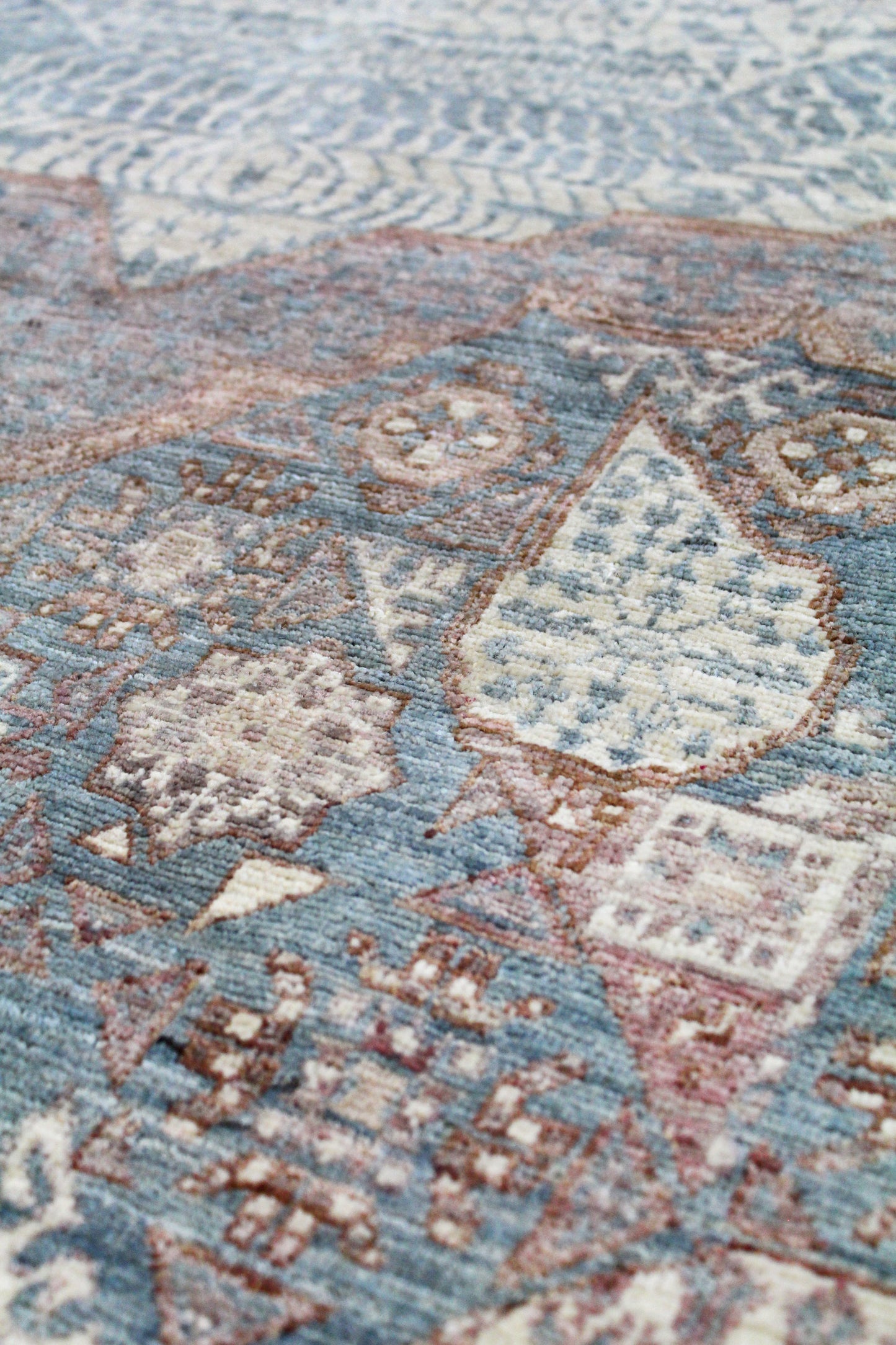 Make a grand statement in your home with our stunning Mamluk Handwoven Tribal Rug (J42602). This tribal handwoven Afghani rug has an alluring Nomadic Persian & Turkish style with its Mamluk design in rich hues of blue and ivory. Wool pile on a cotton foundation make this new rug both sturdy and comfortable to the touch. At 8' 5" X 10' 5" in size, this rug will add just the right amount of pizzazz to any room. All in, you’ll be loving this rug today, tomorrow, and beyond. So, go ahead — get your Mamluk Handwoven Tribal Rug today!