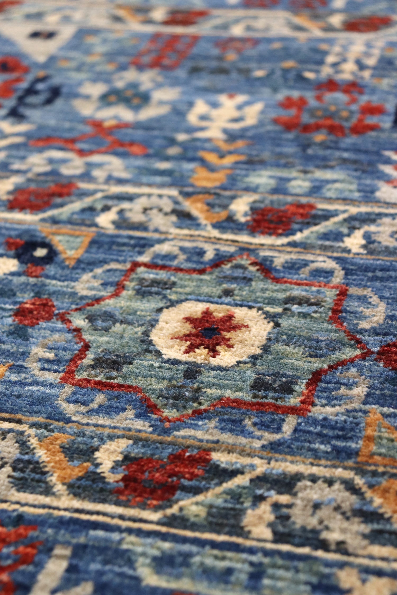 If you are searching for a rug that exudes cultural heritage, impeccable craftsmanship, and timeless beauty, our Afghani Mamluk tribal rug is the perfect choice. Its blues and greens will transform any space into a captivating oasis of style. Bring home this remarkable piece and immerse yourself in the rich history and artistry it represents.