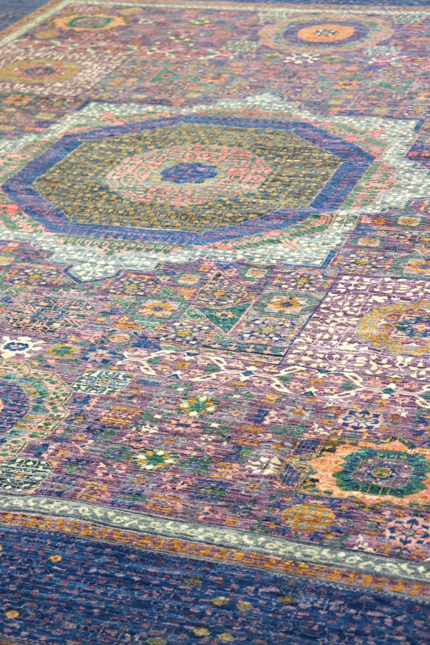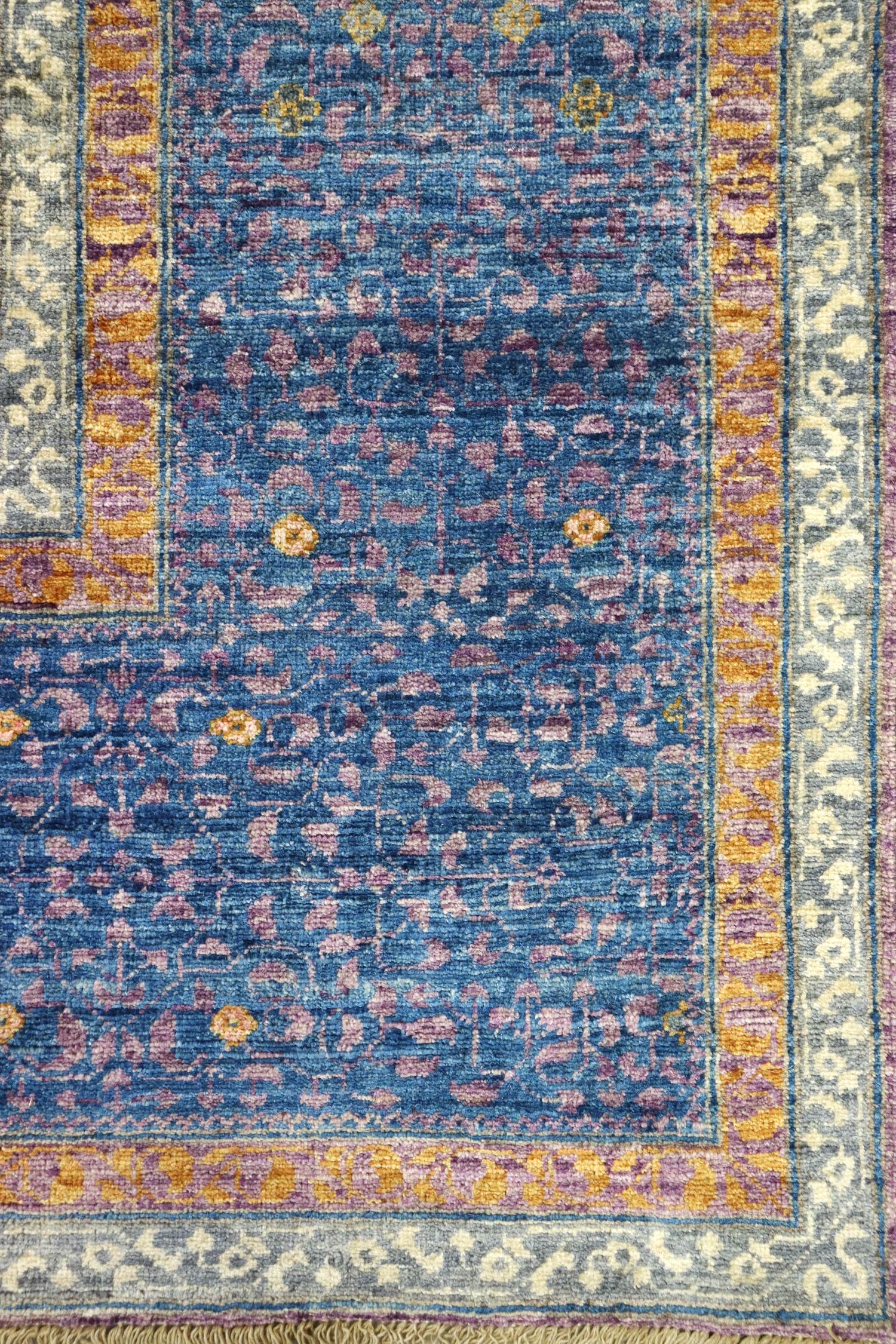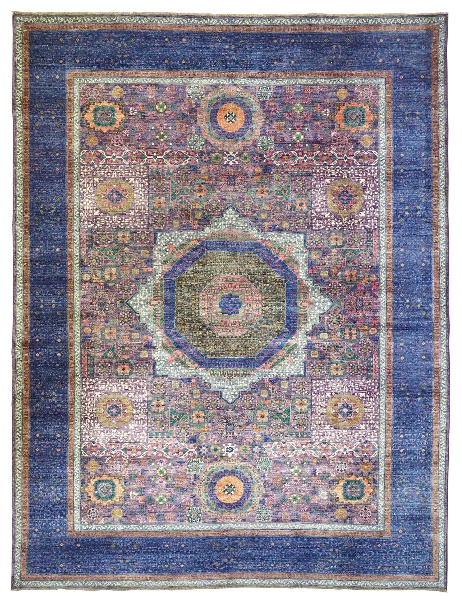 Measuring at 8'11" X 12'1", this rug is a substantial and impactful piece that can transform any space. With a remarkable knots per square inch count of 162, we calculated that this rug boasts an impressive total of 2,502,426 individually hand-tied knots.