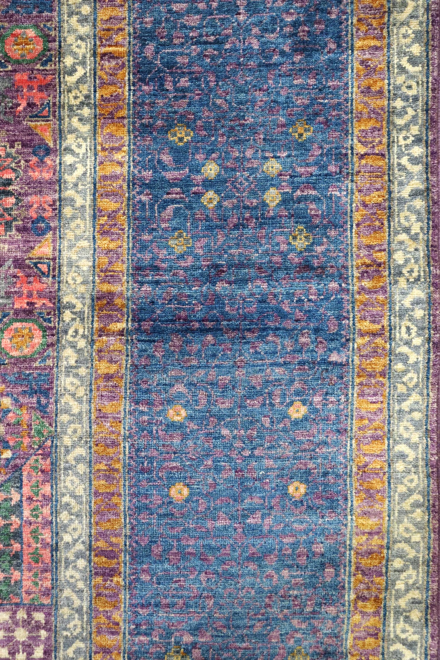 The weaving technique employed in this rug is the asymmetrical "Persian" knot type, ensuring durability and longevity. It boasts a cotton warp and weft, with a luxuriously soft and plush all-wool pile. The double-wefted and heavily packed depressed warp weaving technique used in this rug further enhances its durability, making it one of the most resilient handwoven carpets available.