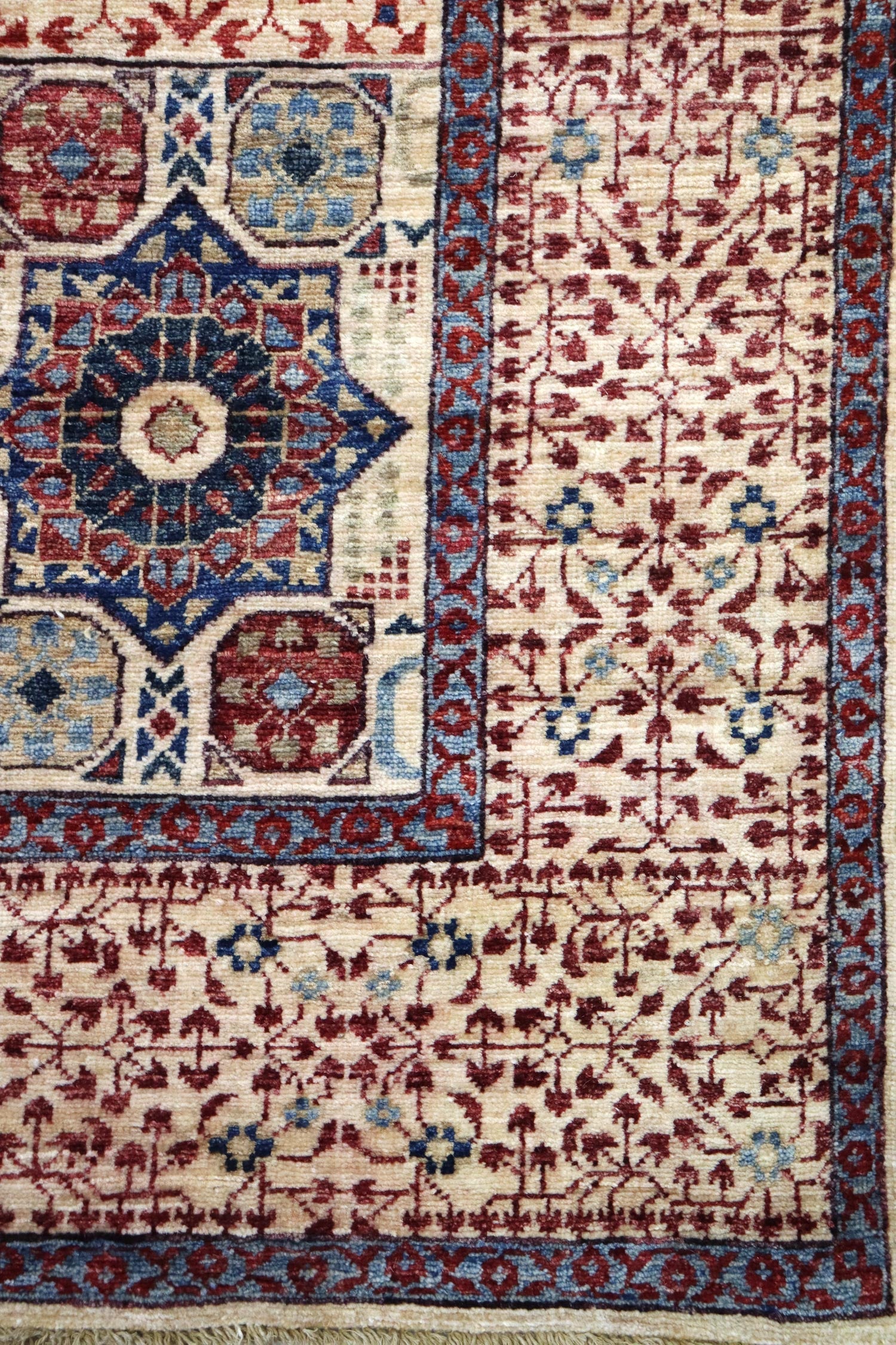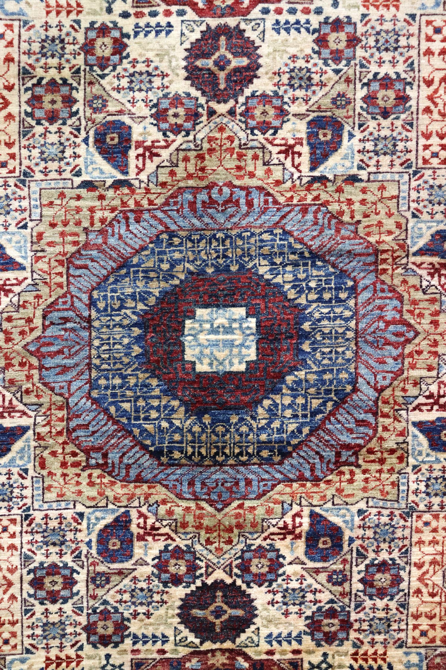 Elevate your space with this captivating Afghani Mamluk rug, a harmonious blend of exquisite design and expert craftsmanship.