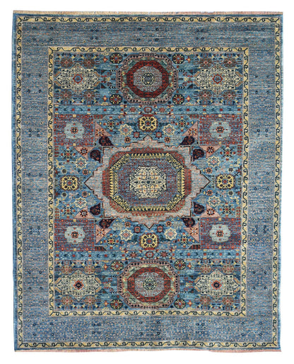 New Nomadic Persian & Turkish Tribal Afghani Mamluk 5' 2" X 6' 5" Blue Rug