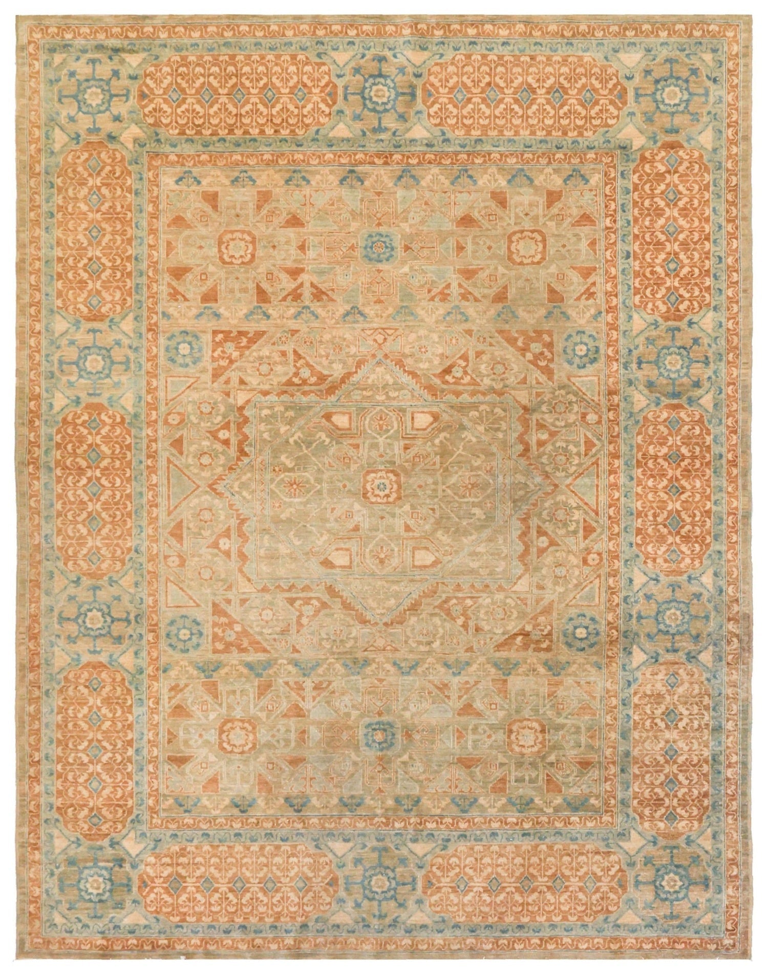 New Nomadic Persian & Turkish Tribal Afghani Mamluk 8' 1" X 10' 3" Green Rug