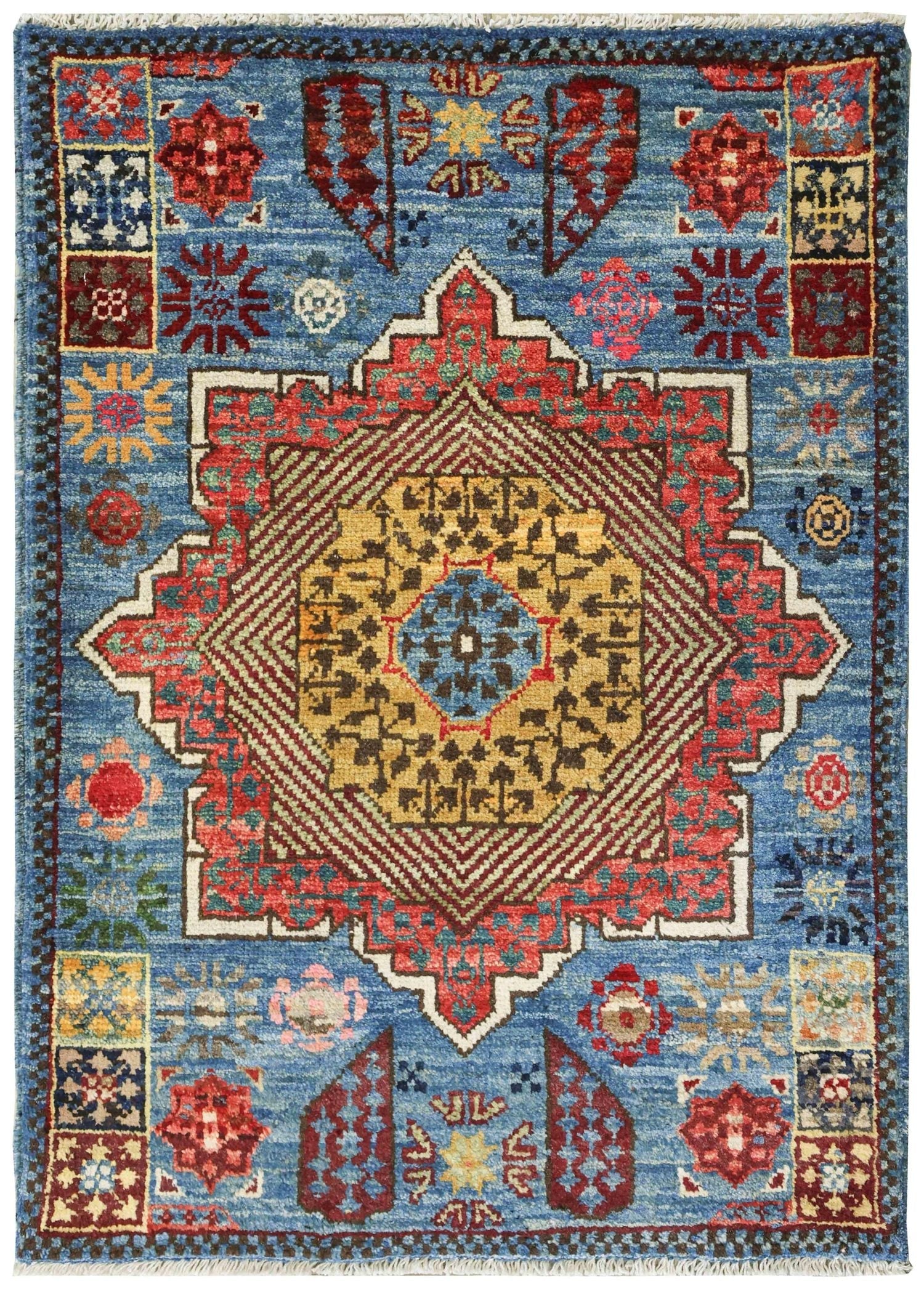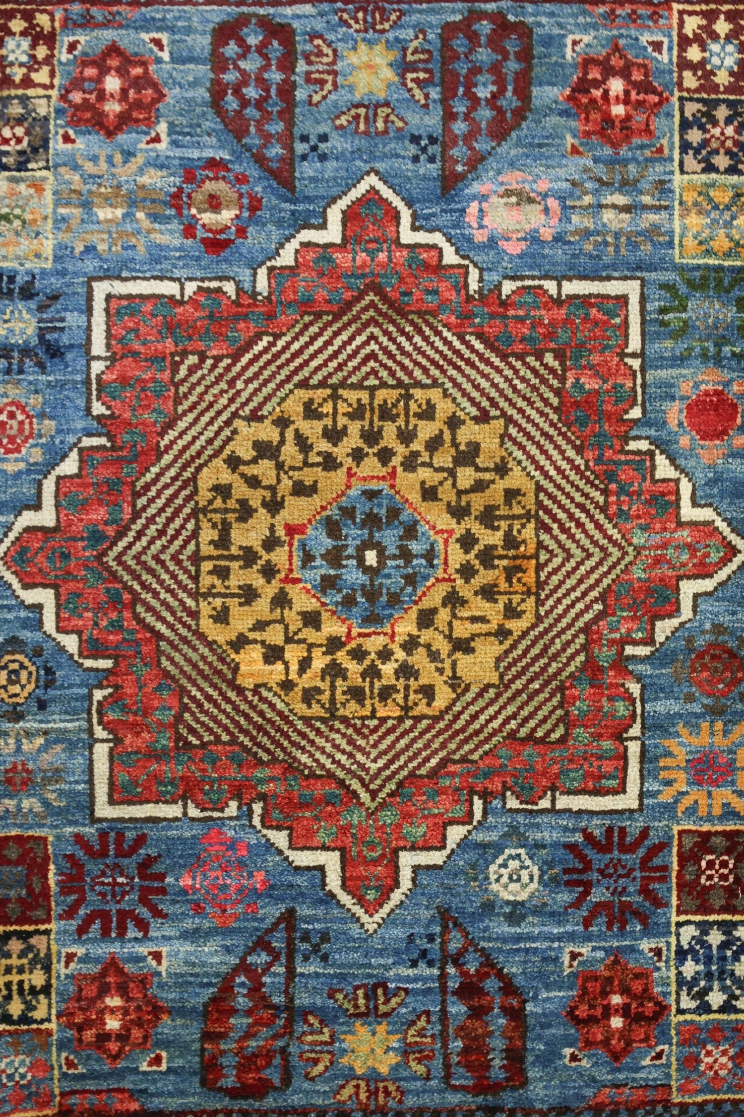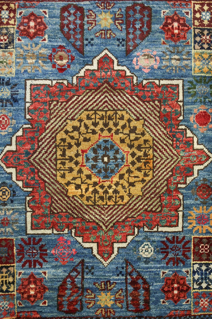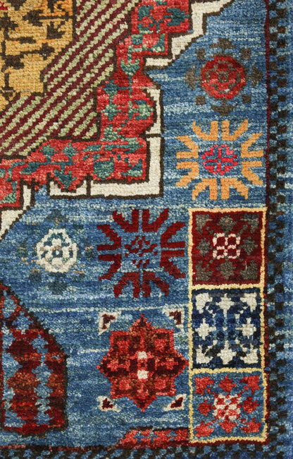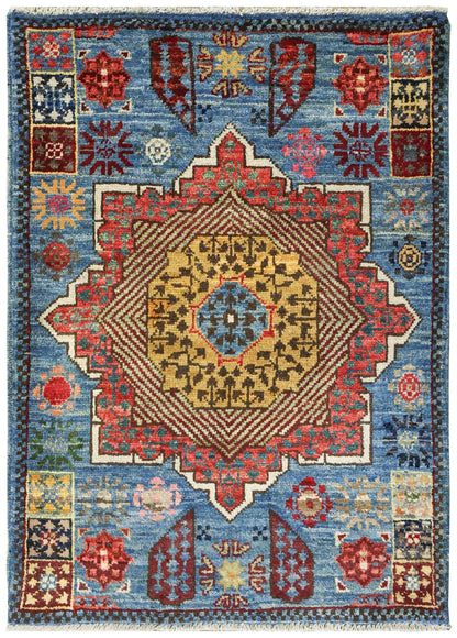 New Nomadic Persian & Turkish Tribal Afghani Mamluk 2' 1" X 2' 10" Blue Rug