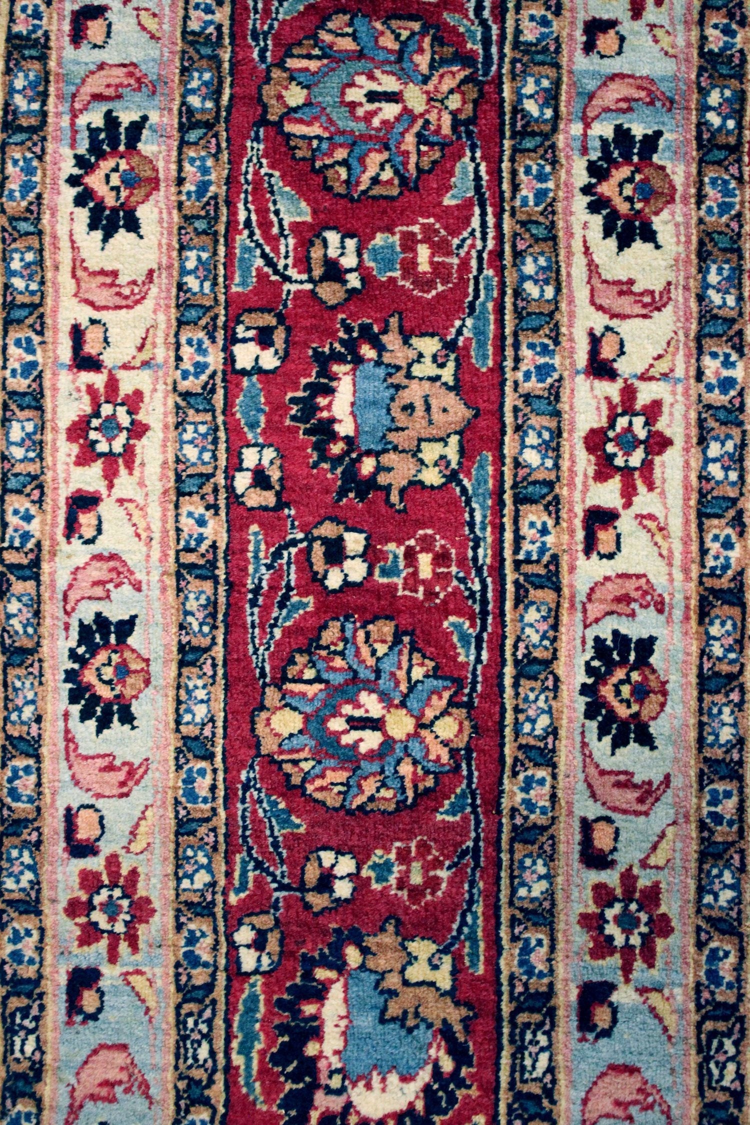 Overall, this Mashad rug is a fine example of early 20th-century Persian craftsmanship, notable for its intricate designs, quality materials, and rich historical background. Its formal character makes it suitable for traditional settings, reflecting the enduring appeal of Mashad's weaving tradition.