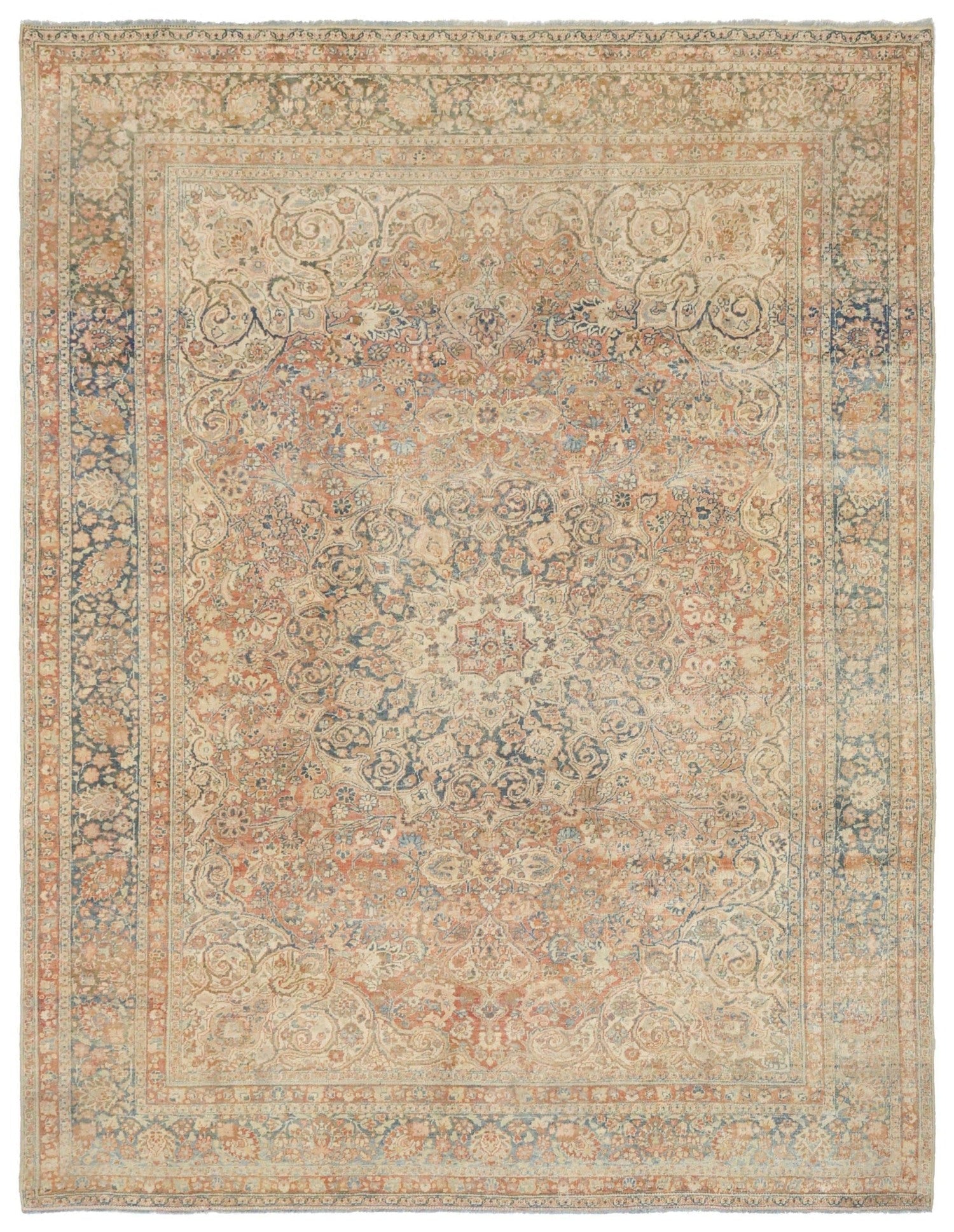 Vintage 1920 Formal Classic Persian Traditional Persian Mashad 8' 4" X 10' 7" Orange Rug