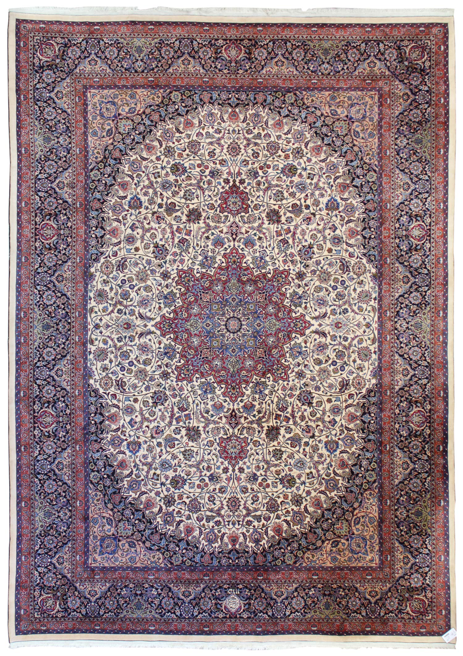 Vintage 1945 Formal Classic Persian Traditional Persian Meshad 11' 6" X 16' 4" Ivory Rug