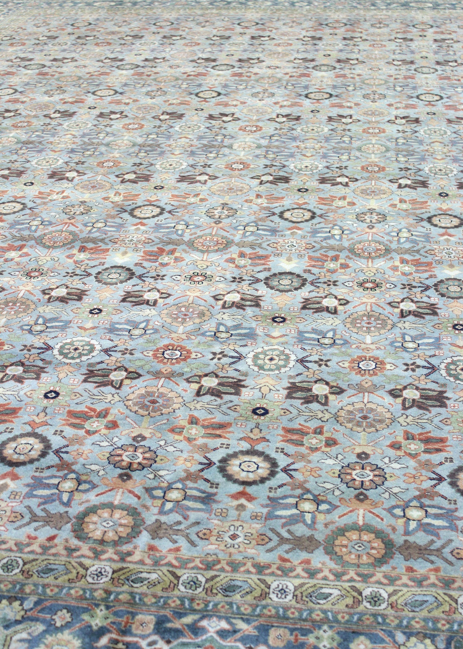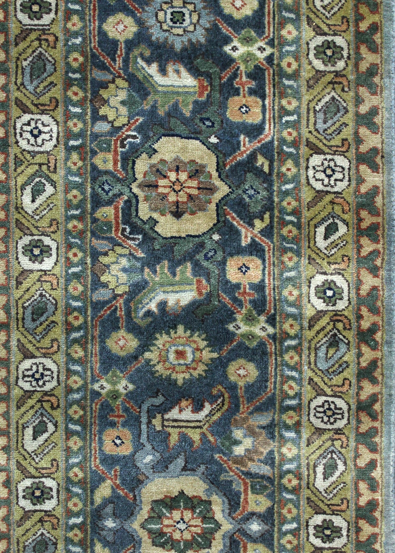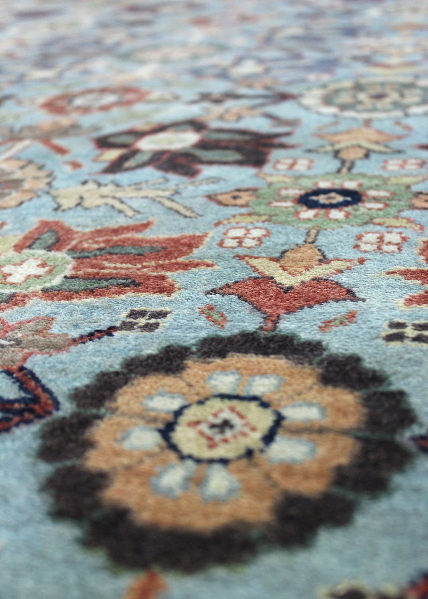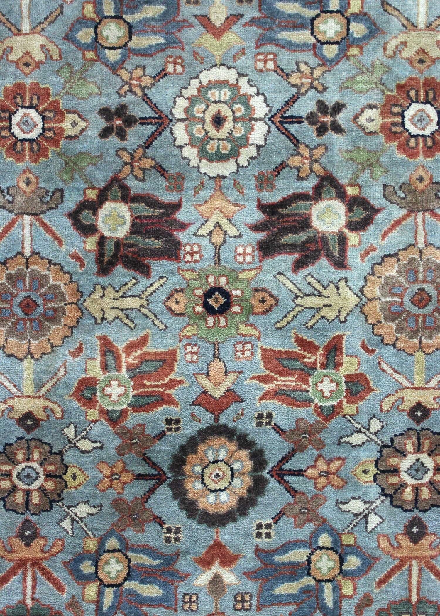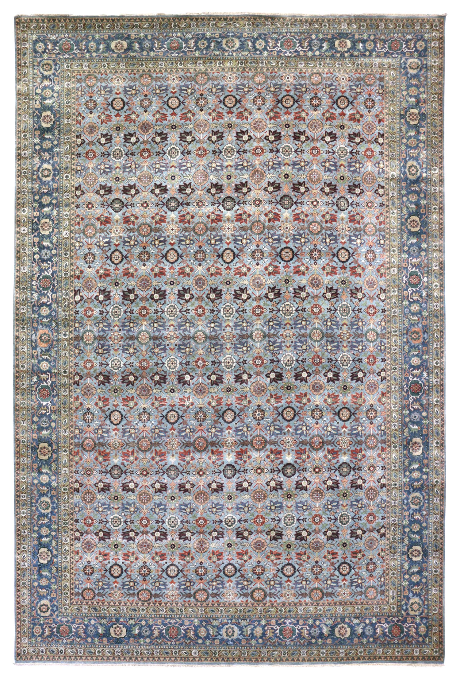 Make your house truly feel like home with our Mina Khani Handwoven Traditional Rug (J69073). It's new and traditional. It’s aqua with blue accent colors. It’s a Formal Classic Persian style rug with a Mina Khani motif. All things you gravitate towards when it comes to aesthetics and design in your space. Being a 12' 1" X 18' 2" rug of wool pile on a cotton foundation, you can rest assured that this piece will do more than just make the visual impact and create the vibe you want. It comes from the fine Indian tradition of handwoven rugmaking, meaning this rug will serve you well and look terrific for years. Add that extra special personal touch today with your own Mina Khani Handwoven Traditional Rug.