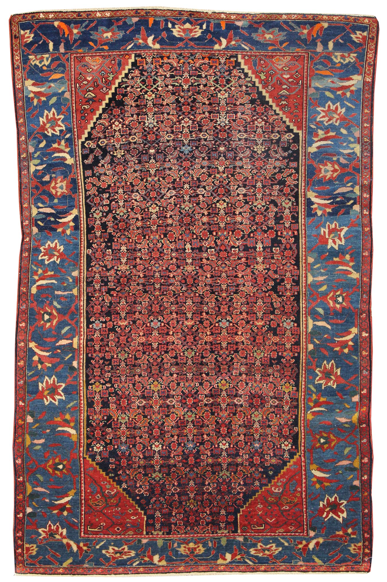 Elevate your room’s style with our Antique Mission Malayer Handwoven Traditional Rug (JF7935). The traditional Formal Classic Persian style, with its Mission Malayer motif, is definitely a stunner that you’ll be proud to show off in your home. Its distinctive blue, navy and red palette will add charm, elegance, and that little bit of that ever-elusive je ne sais quoi. Plus, the wool pile on a cotton foundation used in this 4' 4" X 6' 4" rug accentuates its allure. But, this rug isn’t just worthy of gracing the pages of a design magazine. With its masterful Persian handwoven construction, this antique rug from around 1910 will be a prized possession for decades to come. Get your own show-stopping Antique Mission Malayer Handwoven Traditional Rug today!