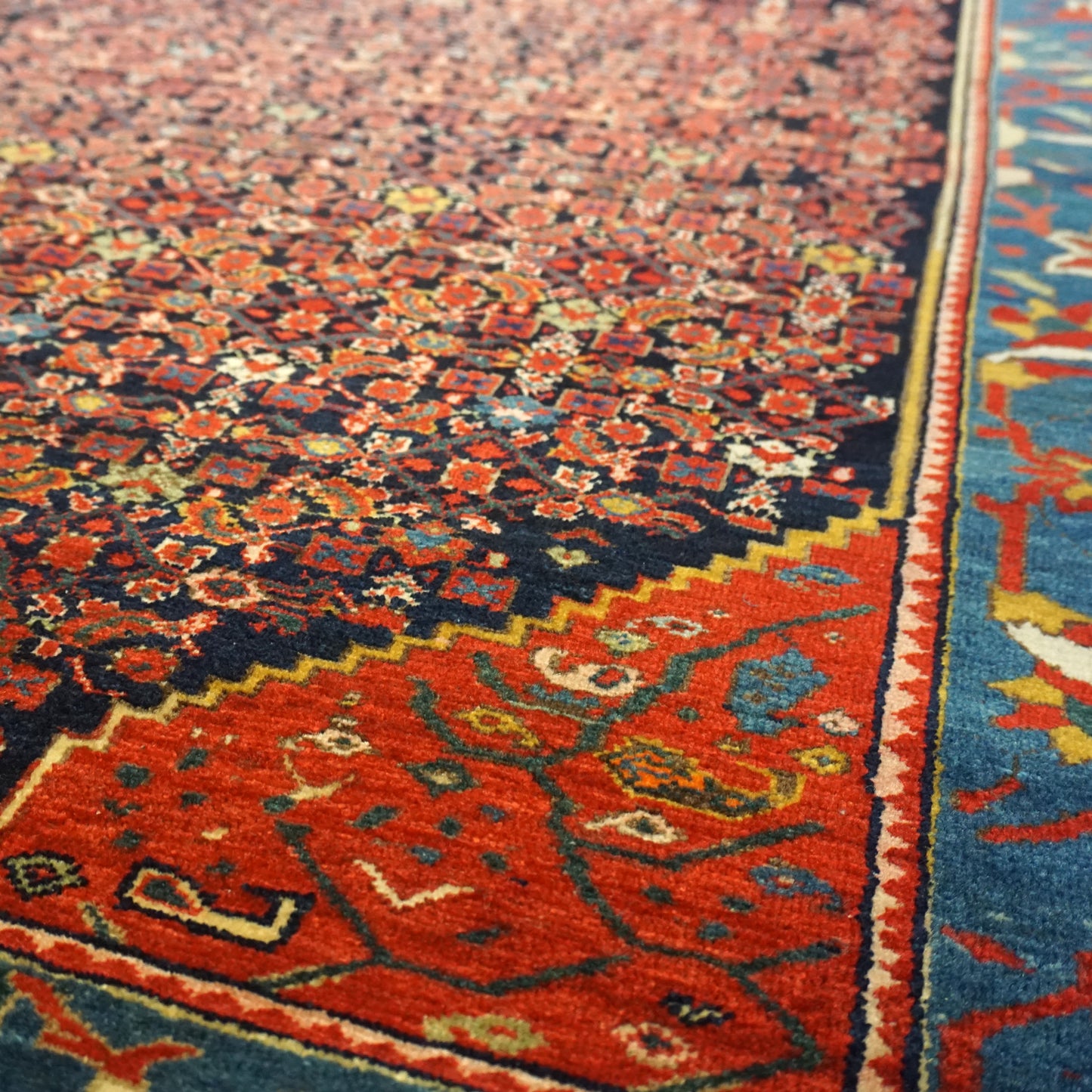 Elevate your room’s style with our Antique Mission Malayer Handwoven Traditional Rug (JF7935). The traditional Formal Classic Persian style, with its Mission Malayer motif, is definitely a stunner that you’ll be proud to show off in your home. Its distinctive blue, navy and red palette will add charm, elegance, and that little bit of that ever-elusive je ne sais quoi. Plus, the wool pile on a cotton foundation used in this 4' 4" X 6' 4" rug accentuates its allure. But, this rug isn’t just worthy of gracing the pages of a design magazine. With its masterful Persian handwoven construction, this antique rug from around 1910 will be a prized possession for decades to come. Get your own show-stopping Antique Mission Malayer Handwoven Traditional Rug today!